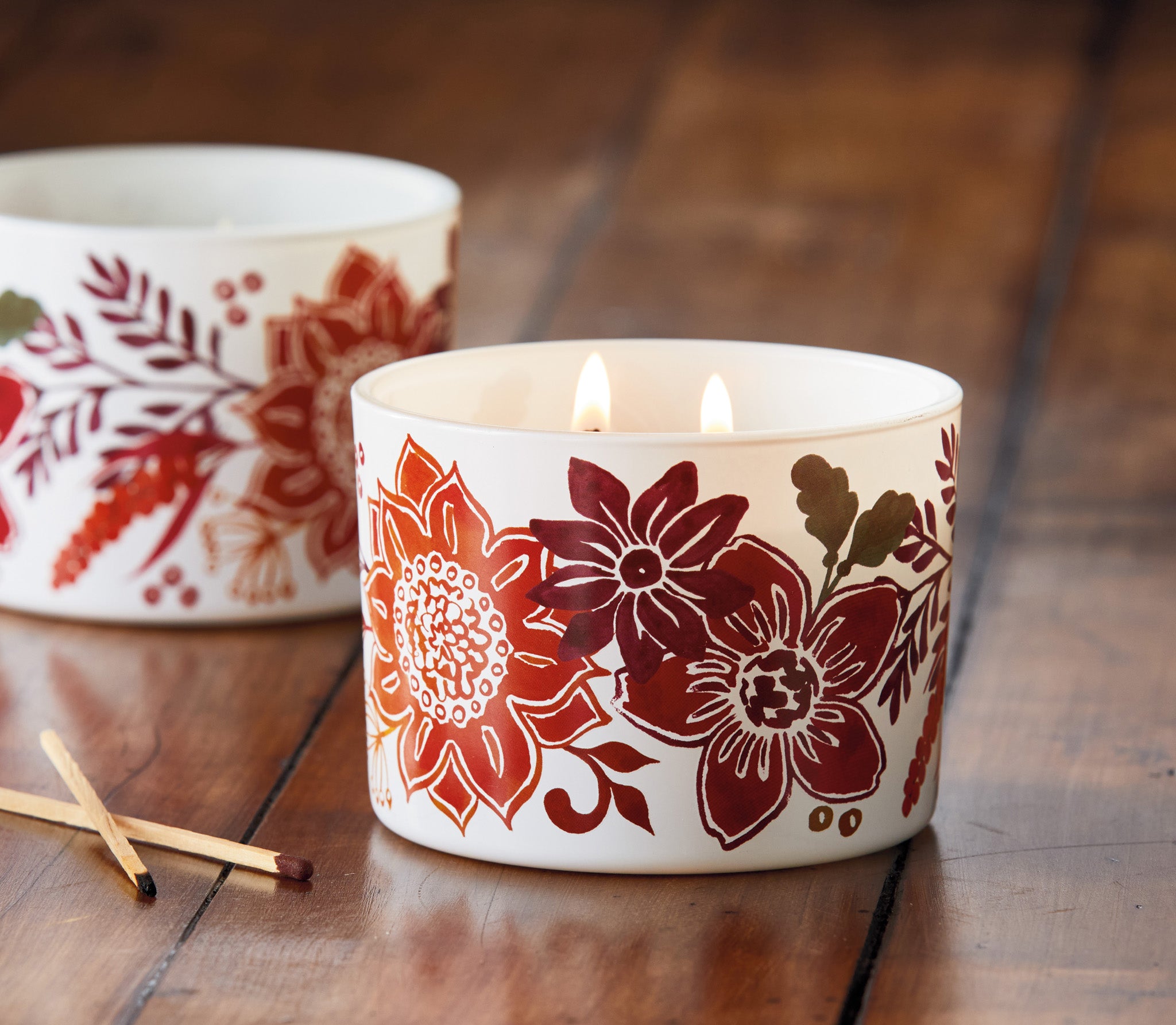 Sweet pumpkin with sandalwood and vanilla fills the room from a double wick glass candle. Trim wick for a clean burn. Hand painted details add warmth while its versatile design makes styling simple. Sized for layered displays and pairs beautifully with seasonal greenery and décor. View all items in Grace & Gratitude.