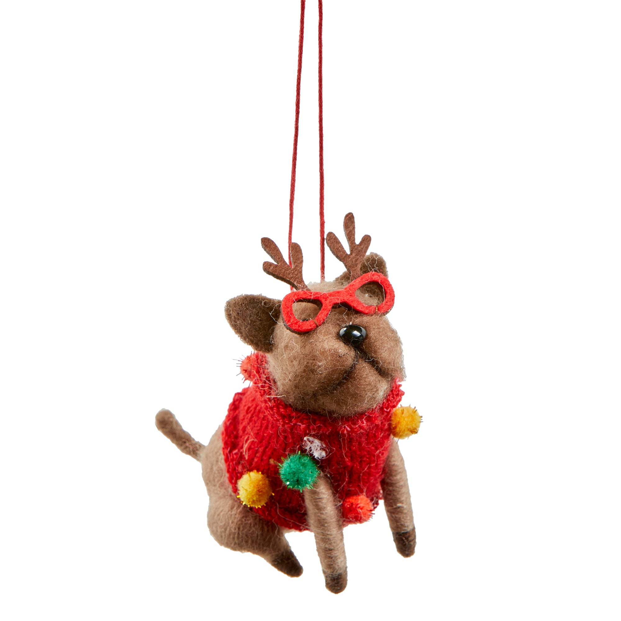 Trio of playful Christmas dog ornaments, each with its own festive personality. Perfect for adding humor, charm, and a pet lover friendly touch to holiday trees. Hand painted details add warmth while its versatile design makes styling simple. Sized for layered displays and pairs beautifully with seasonal greenery and décor. View all items in Ornaments.