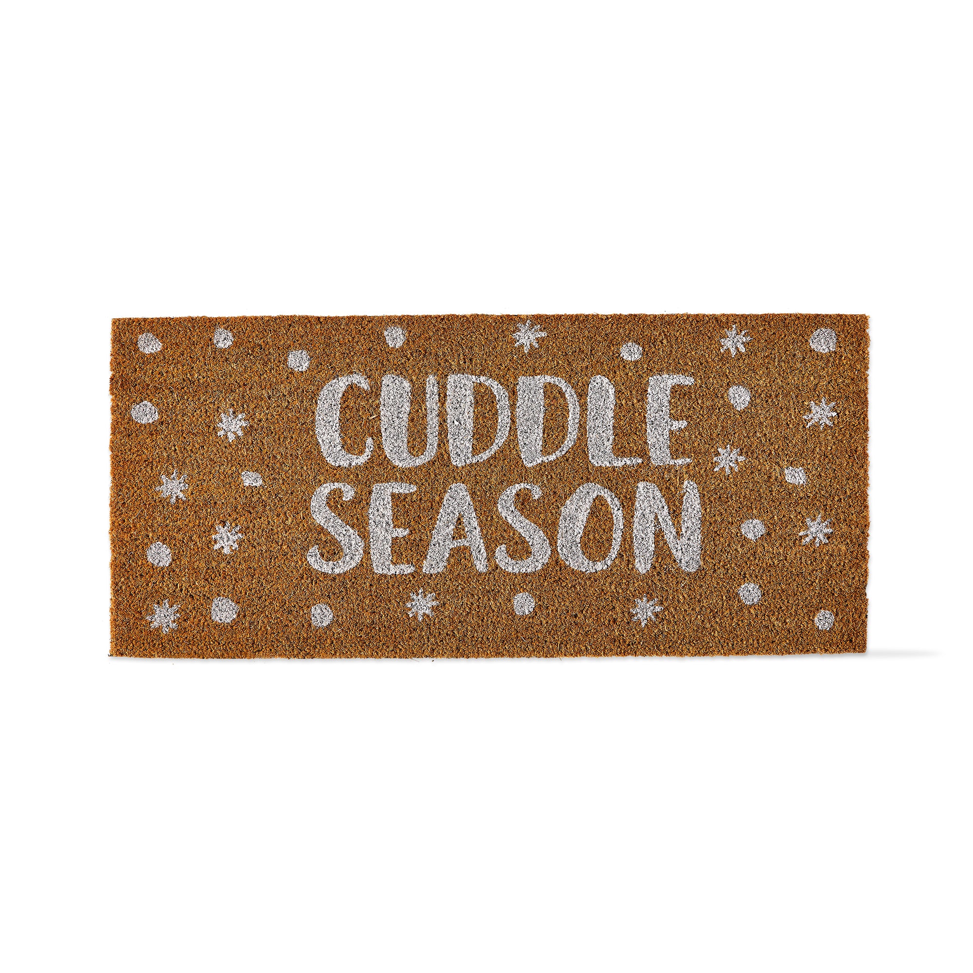 The cuddle is real! this cuddle season coir mat makes a stylish and eco-friendly statement at any doorstep. coir is a natural, durable material made sustainably from coconut husks that is easy to care for. doormats have an attached header card with handle that allows for easy display and convenient handling.