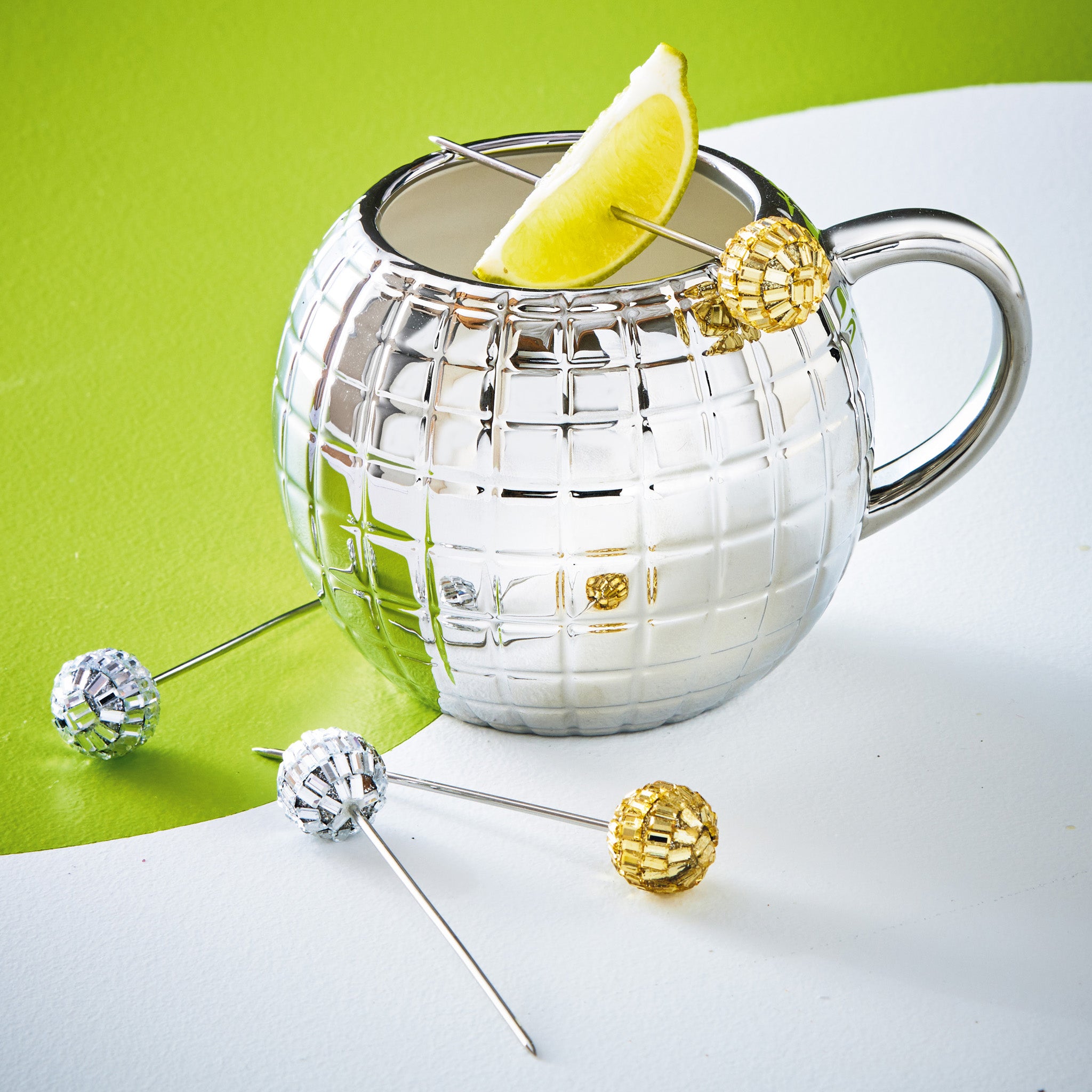 Set of four disco ball cocktail picks with hand crafted glass toppers. Perfect for festive drinks, party displays, or elevating any holiday bar setup. Hand painted details add warmth while its versatile design makes styling simple. Sized for layered displays and pairs beautifully with seasonal greenery and décor. View all items in Groovy Christmas.