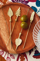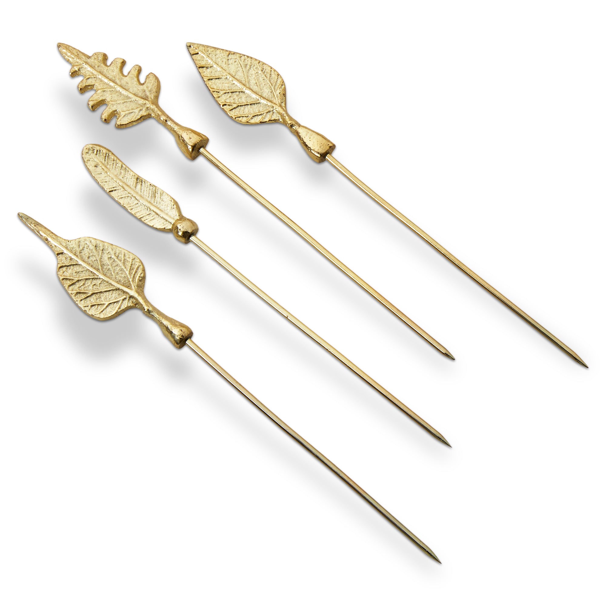 Set of four gold leaf cocktail picks with delicate botanical toppers. Ideal for cocktails, charcuterie boards, and seasonal hosting. Hand painted details add warmth while its versatile design makes styling simple. Sized for layered displays and pairs beautifully with seasonal greenery and décor. View all items in Grace & Gratitude.