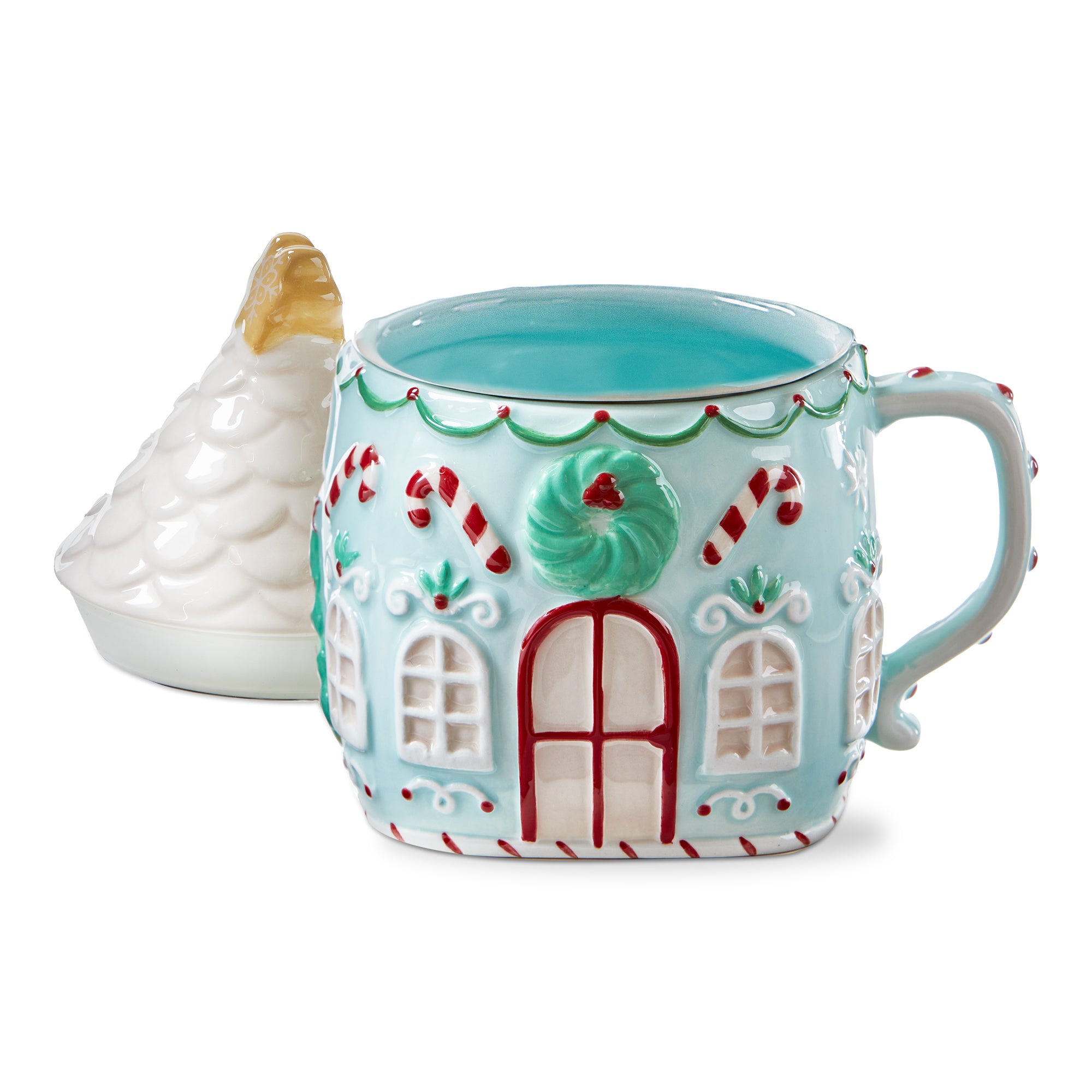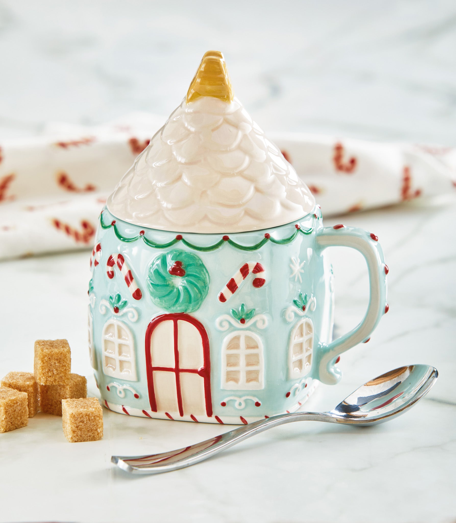 Whimsical Sweetest Christmas house lidded mug with sculpted detailing, a removable lid, and hand painted charm. A cozy seasonal favorite for cocoa bars, gifting, and holiday mornings. Hand painted details add warmth while its versatile design makes styling simple. Sized for layered displays and pairs beautifully with seasonal greenery and décor. View all items in Sweetest Christmas.