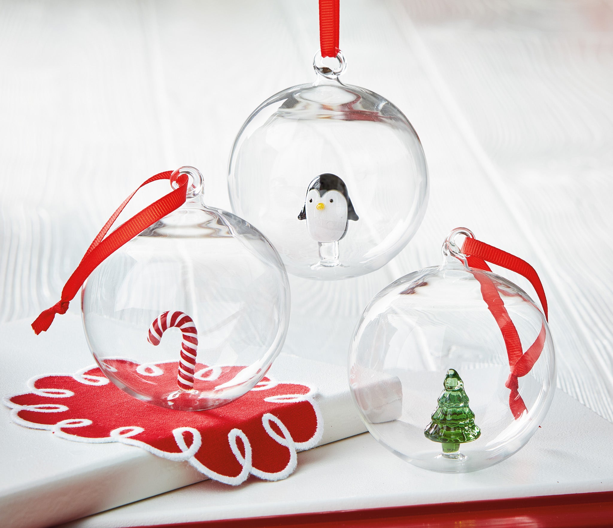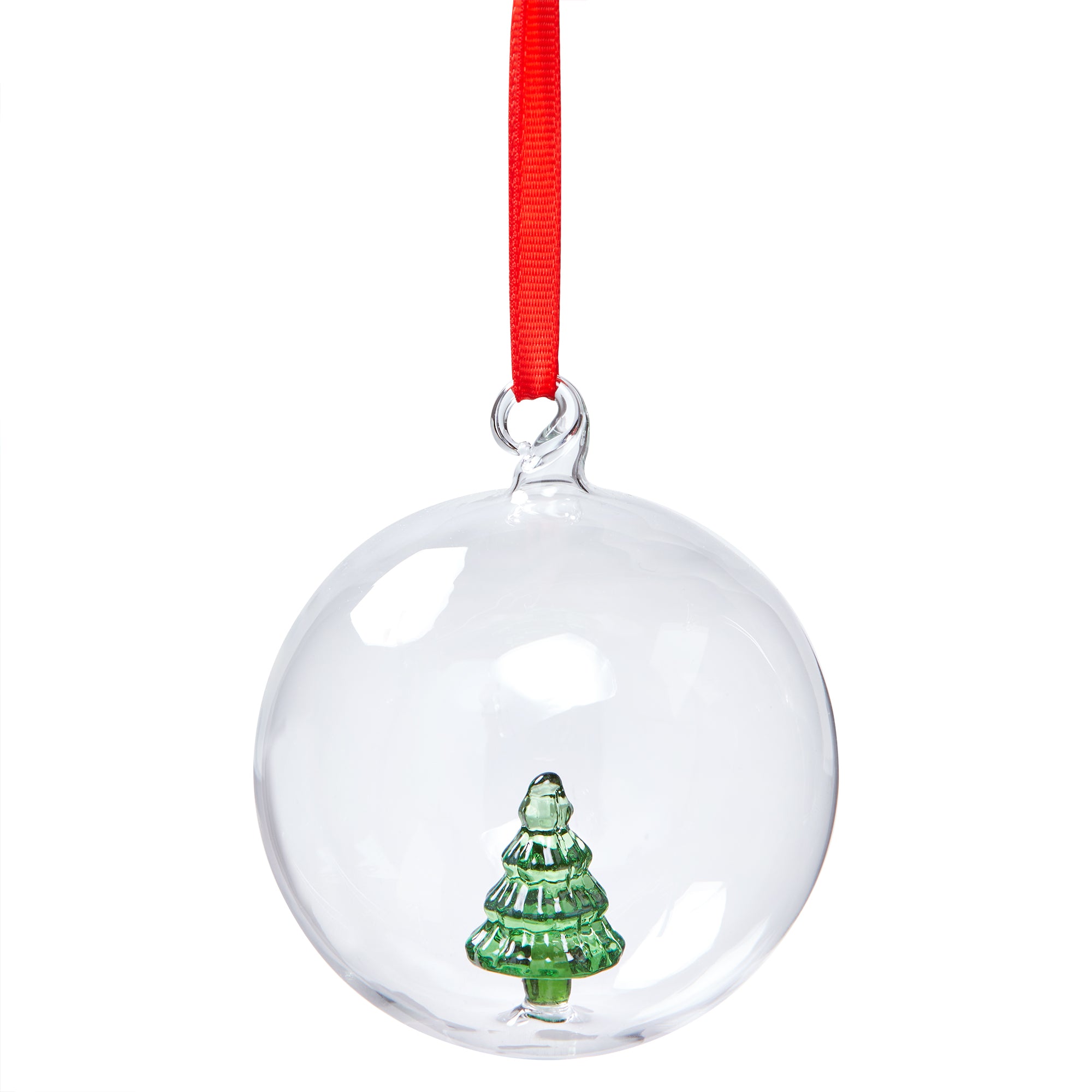 Clear globe ornament with a miniature evergreen tree inside and red ribbon hanger. Brings snowy forest charm and a sweet storybook look to the tree. Hand painted details add warmth while its versatile design makes styling simple. Sized for layered displays and pairs beautifully with seasonal greenery and décor. View all items in Holiday Cheer.