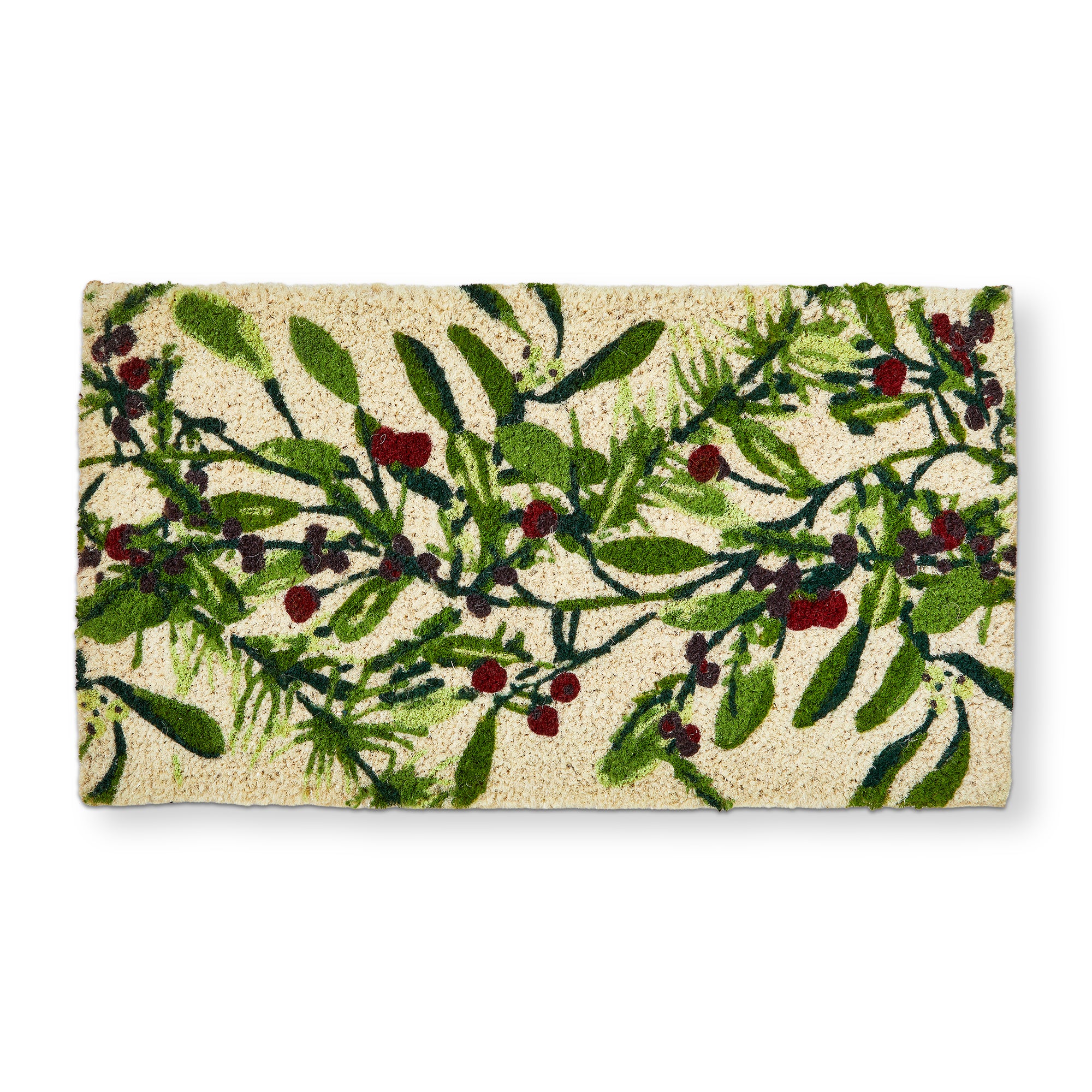 Hand painted winter berries coir mat that welcomes guests with cheerful greenery and seasonal color. Durable hand spun coir brushes off boots while the festive design brightens any doorway. Perfect for pairing with winter wreaths. Hand painted details add warmth while its versatile design makes styling simple. Sized for layered displays and pairs beautifully with seasonal greenery and décor. View all items in Winter Berries.