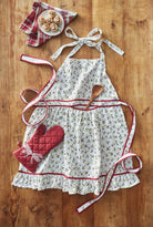 Winter berries ruffle apron that blends everyday comfort with festive flair, finished with soft piping, pockets, and cheerful seasonal detail. Hand painted details add warmth while its versatile design makes styling simple. Sized for layered displays and pairs beautifully with seasonal greenery and décor. View all items in Winter Berries.