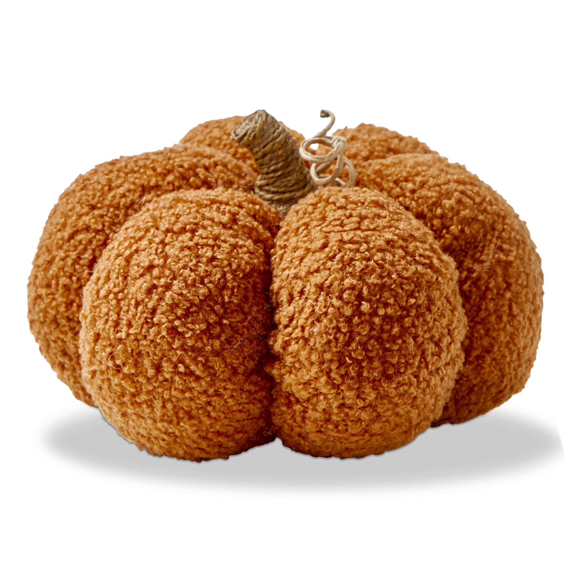 Small boucle pumpkin decor piece in warm terracotta with soft boucle texture. Adds inviting color and touchable dimension to autumn vignettes. Hand painted details add warmth while its versatile design makes styling simple. Sized for layered displays and pairs beautifully with seasonal greenery and décor. View all items in Turkey & Toast.