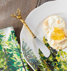 Sculpted reindeer spreader crafted with a brass finish and stainless steel blade. A whimsical and functional accent for cheese boards, charcuterie, and holiday gifting. Hand painted details add warmth while its versatile design makes styling simple. Sized for layered displays and pairs beautifully with seasonal greenery and décor. View all items in Northern Forest.
