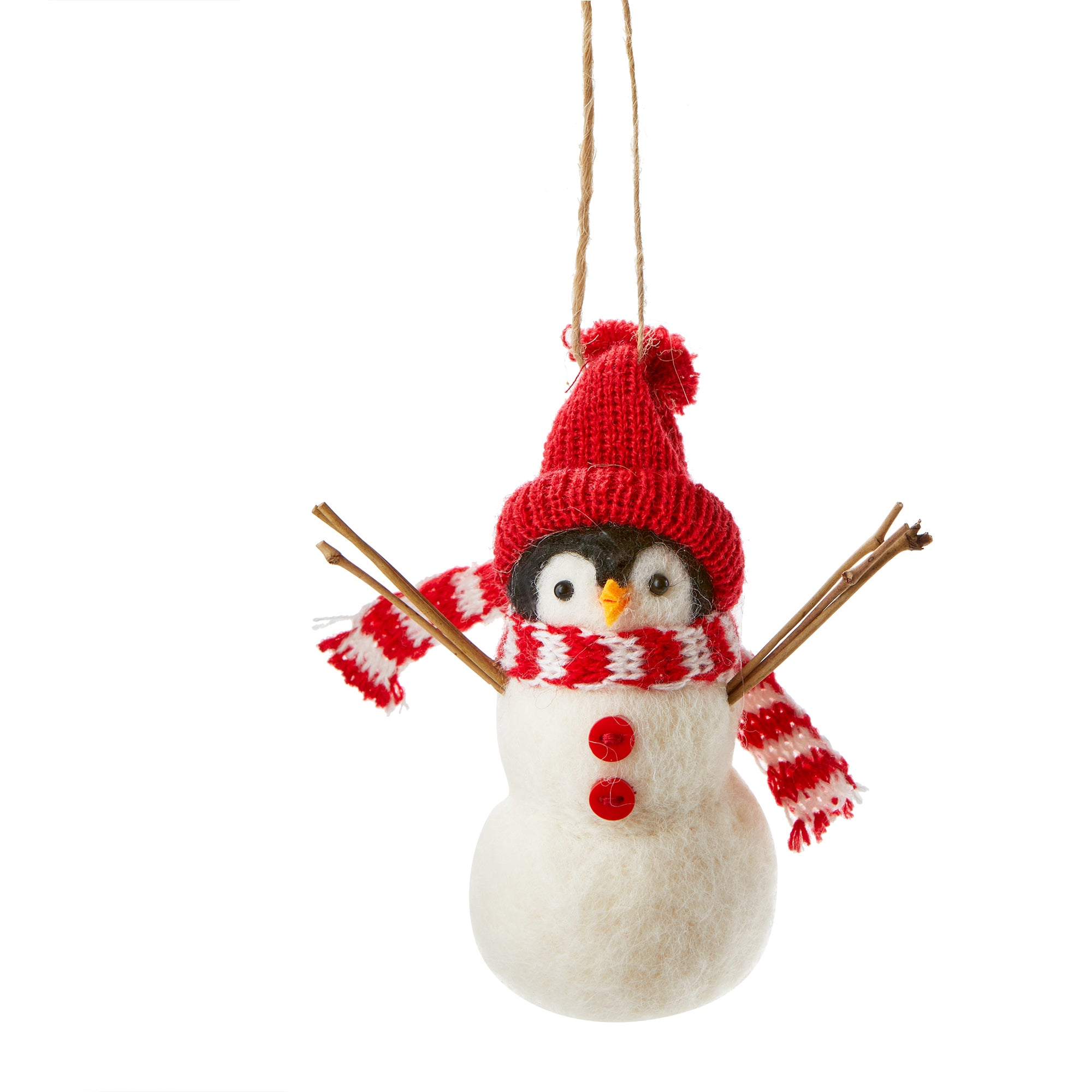 Snowman penguin ornament with bright winter accessories and sweet handcrafted details. A fun character that brings personality to any tree. Hand painted details add warmth while its versatile design makes styling simple. Sized for layered displays and pairs beautifully with seasonal greenery and décor. View all items in Ornaments.