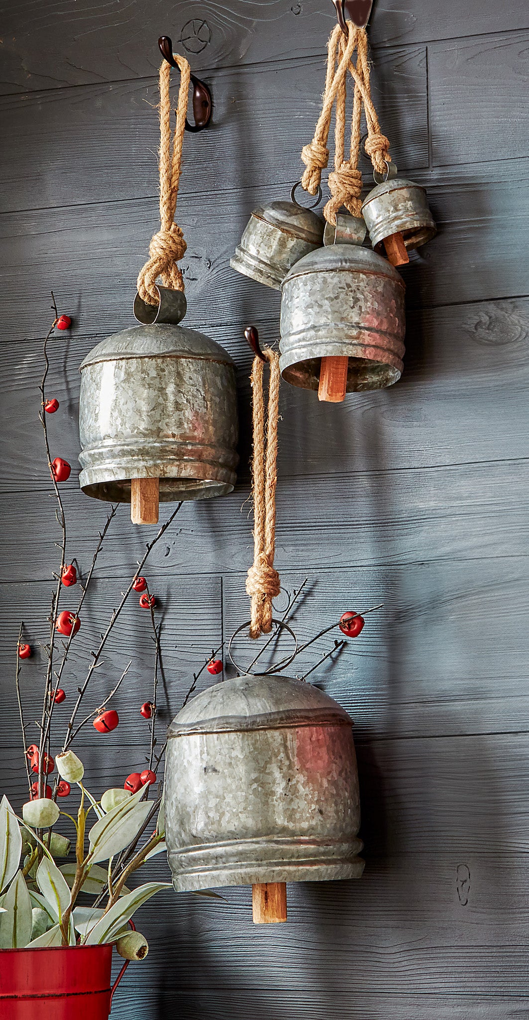 Vintage Bell & Jute Hanger Set Of 3