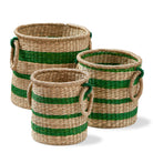 Store your blankets neatly with this set of three high-quality, hand-crafted seagrass baskets featuring stylish green stripes. Each basket includes round handles for easy carrying.View all items in Fresh Pick.
