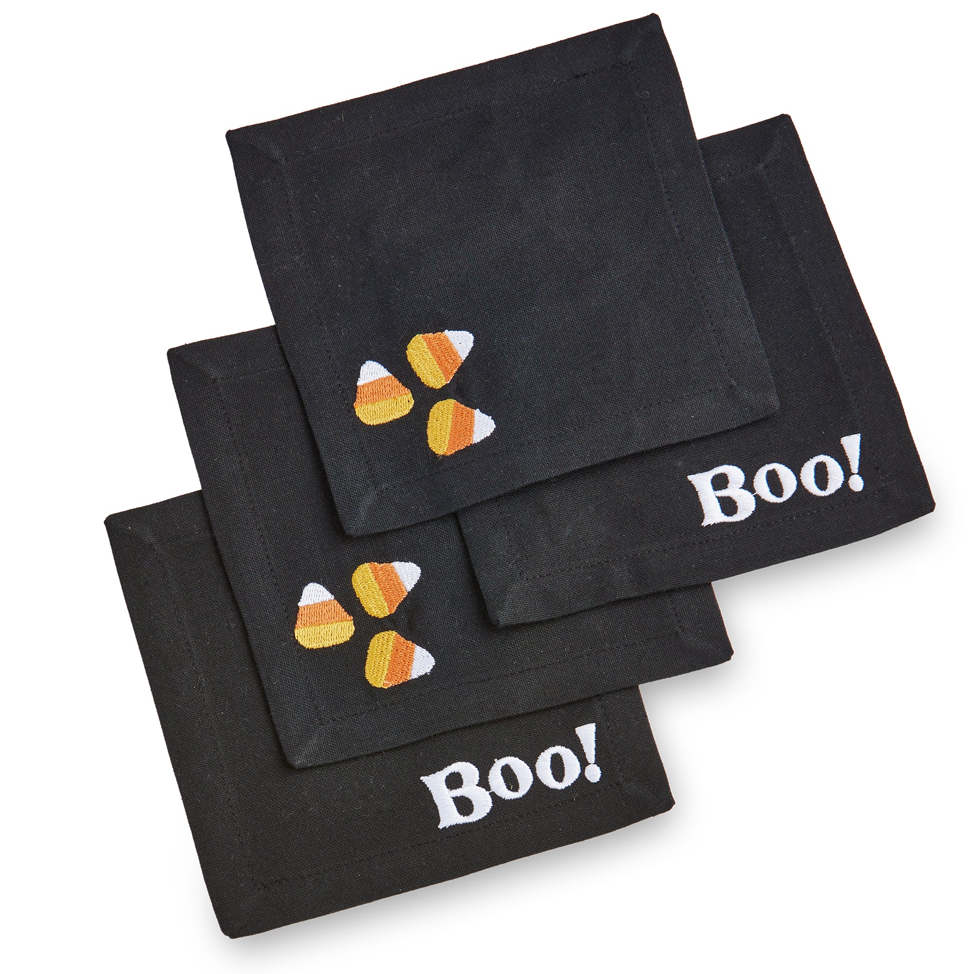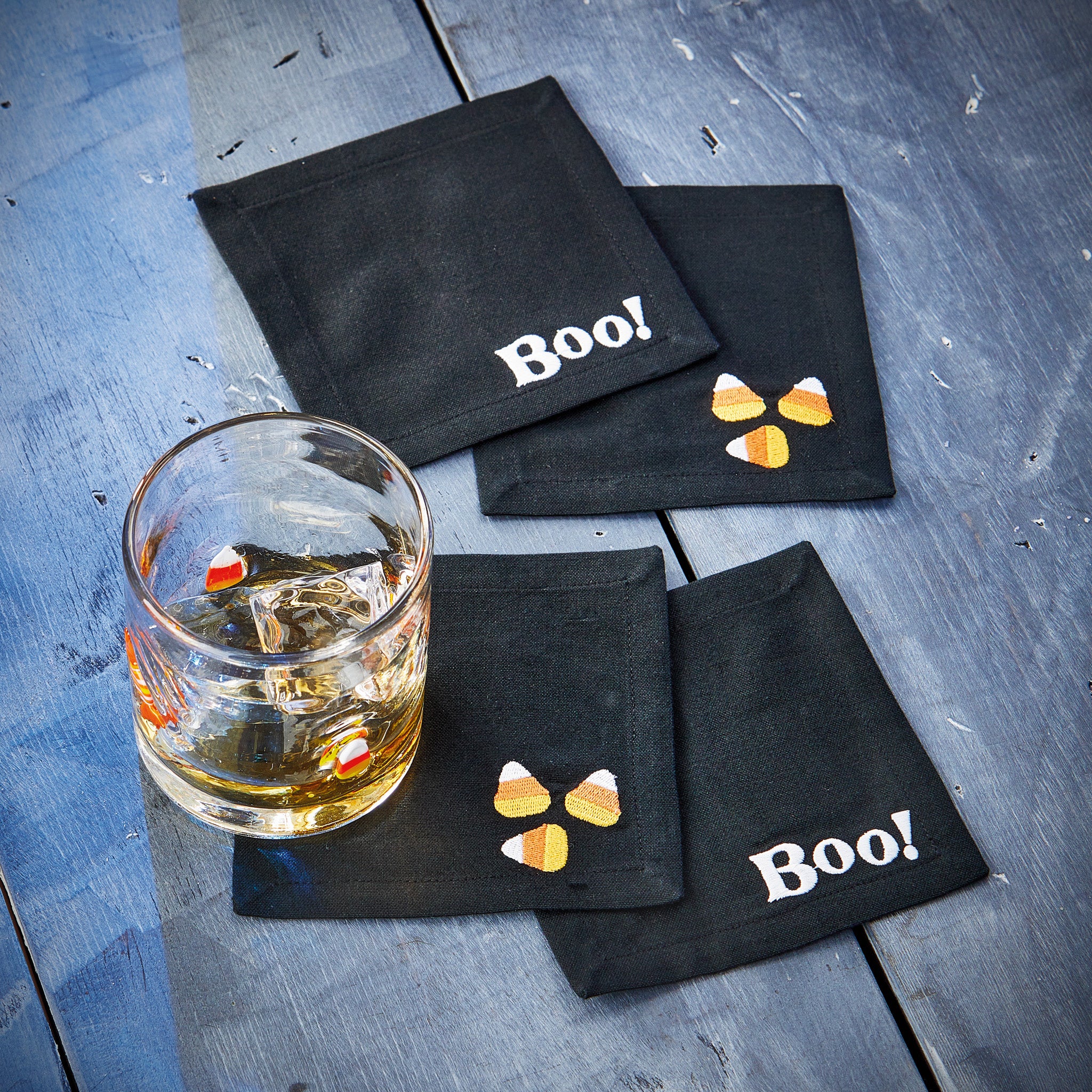 Boo Crew cotton coasters add stitched Halloween icons to protect tables from spooky sips and layer easily with other black and orange accents. Hand painted details add warmth while its versatile design makes styling simple. Sized for layered displays and pairs beautifully with seasonal greenery and décor.