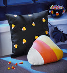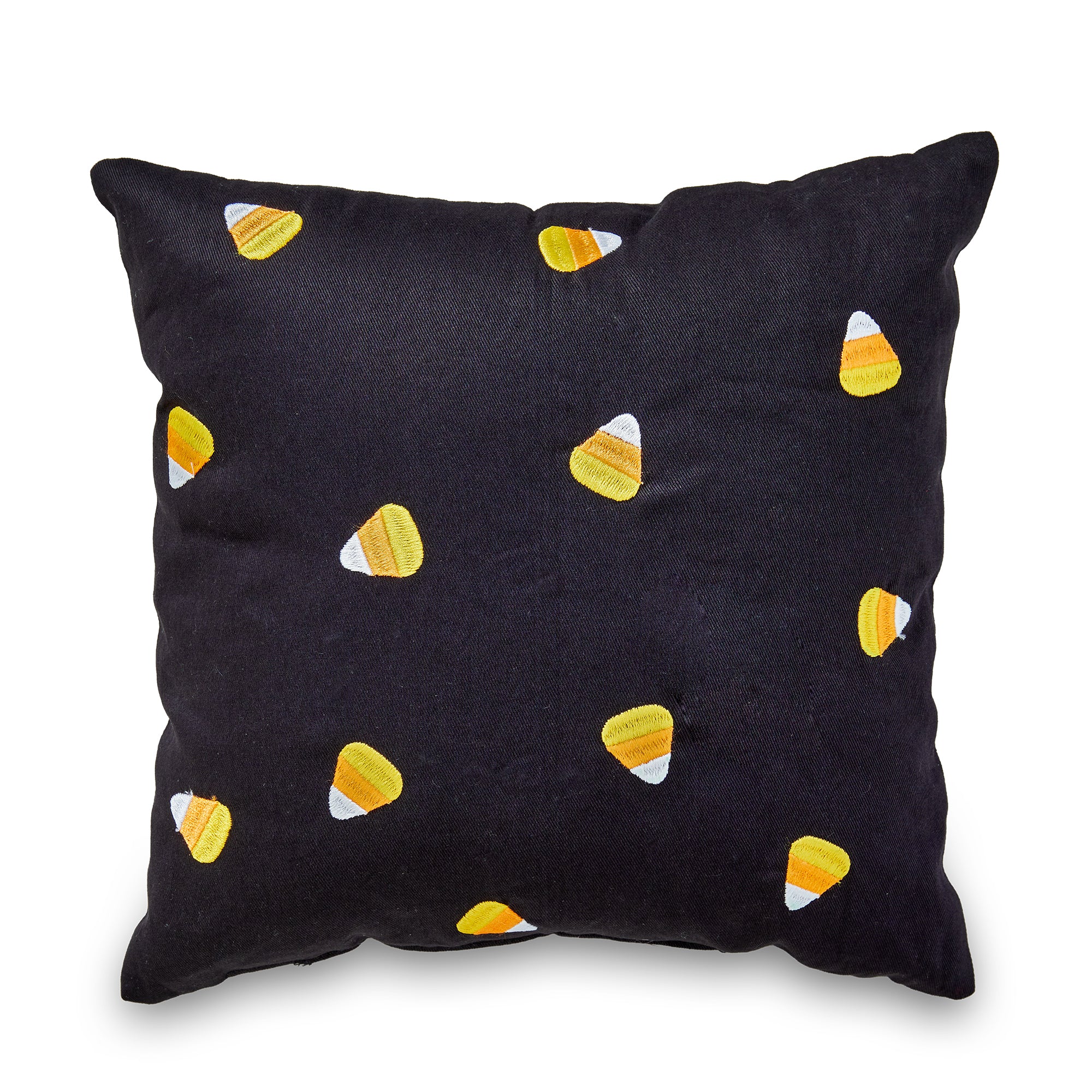 Candy corn embroidered pillow adds playful Halloween color and texture to sofas and chairs and is the perfect size to tuck into layered pillow groupings. Hand painted details add warmth while its versatile design makes styling simple. Sized for layered displays and pairs beautifully with seasonal greenery and décor.