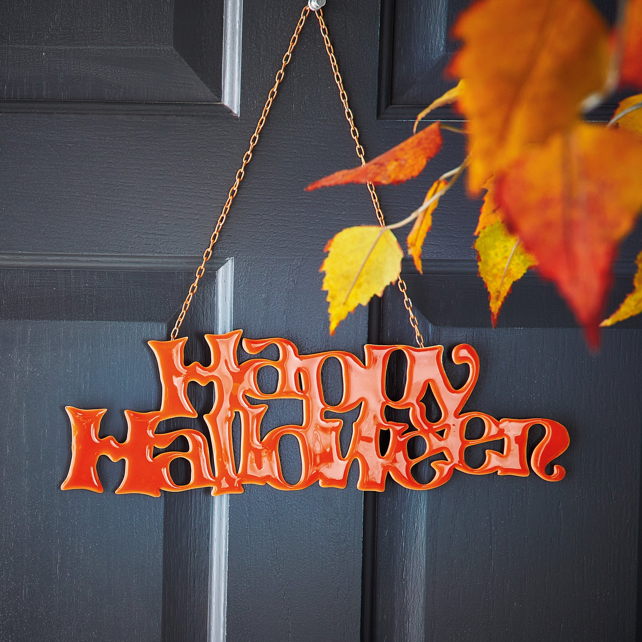 Hang a bright orange metal Happy Halloween sign on a door or wreath for instant curb appeal. Hand painted details add warmth while its versatile design makes styling simple. Sized for layered displays and pairs beautifully with seasonal greenery and décor.