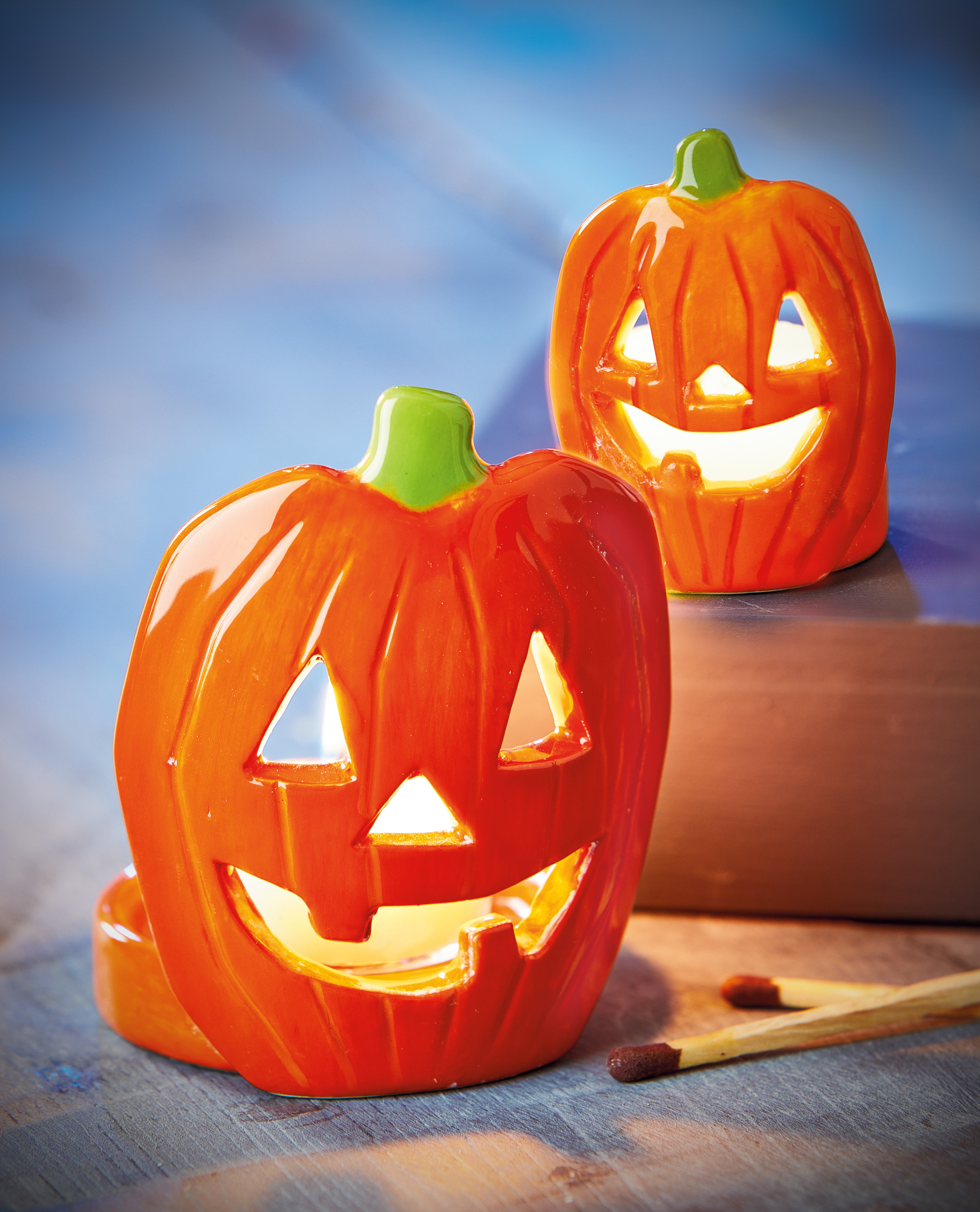 Nesting ceramic jack o lanterns fit tealights or votives and stack away between parties. Hand painted details add warmth while its versatile design makes styling simple. Sized for layered displays and pairs beautifully with seasonal greenery and décor. View all items in Boo Crew.