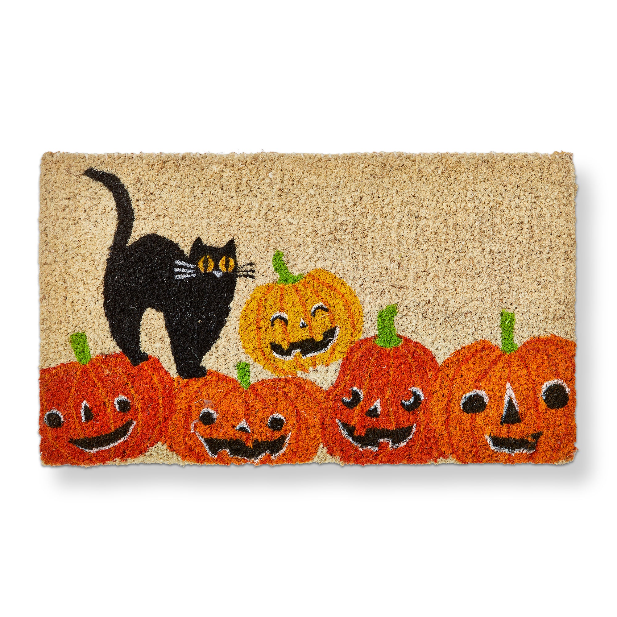 Pumpkin patch scene on coir sets the fall mood from the front step and keeps shoes clean. Hand painted details add warmth while its versatile design makes styling simple. Sized for layered displays and pairs beautifully with seasonal greenery and décor.