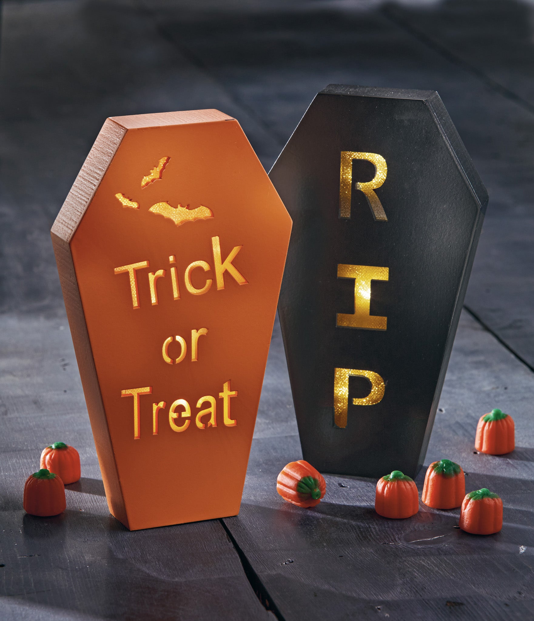 Create a spooky and mysterious atmosphere with this R.I.P. coffin LED decor. The wooden coffin with LED lights and the words "R.I.P." add a touch of gothic charm to your Halloween decor. This eerie decoration is perfect for creating a haunted house or graveyard scene. View all items in Boo Crew.