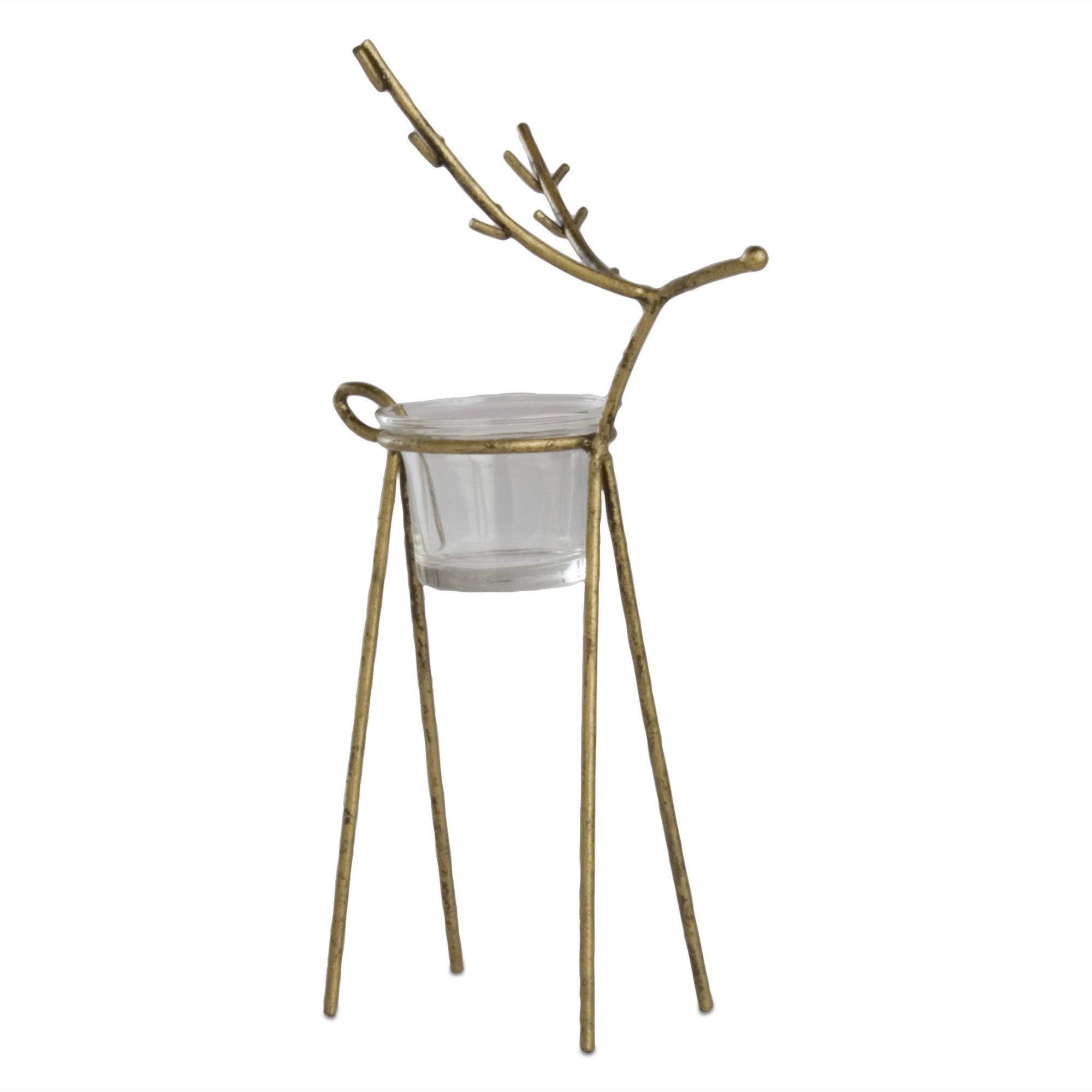 Make the season merry and bright! made in the shape of a sculptural prancing reindeer, this adorable tealight holder will be a festive accent to any christmas layout. the antique gold finish complements a range of christmas decor. holds a standard size tealight candle, sold separately.
