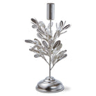 Tall nickel iron taper holder shaped with delicate sprigs for a winter inspired glow. Designed for any standard taper, it adds height and shine to holiday tables or mantels. A striking focal point for seasonal candlelight. Hand painted details add warmth while its versatile design makes styling simple. Sized for layered displays and pairs beautifully with seasonal greenery and décor.
