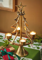 Antique brass aluminum tree shaped votive holder that brings warm glow to holiday tables. The sculptural form creates a striking centerpiece while holding standard tealight or votive candles. Beautiful paired with garlands or metallic accents. Hand painted details add warmth while its versatile design makes styling simple. Sized for layered displays and pairs beautifully with seasonal greenery and décor.