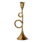 Small antique brass taper holder with a sleek sculptural form that complements modern and traditional décor. Holds a standard taper and layers beautifully with the larger version for a coordinated candlelight display. Hand painted details add warmth while its versatile design makes styling simple. Sized for layered displays and pairs beautifully with seasonal greenery and décor.