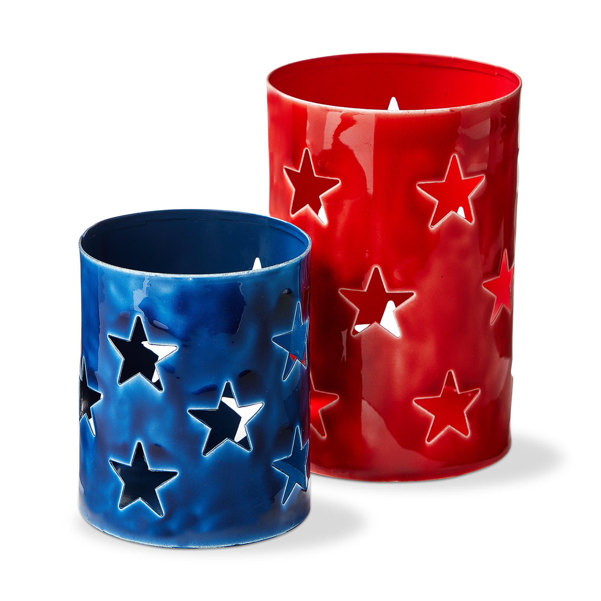 This hand-crafted set of two enameled iron star pillar holders is great for both indoor and outdoor 4th of July parties!