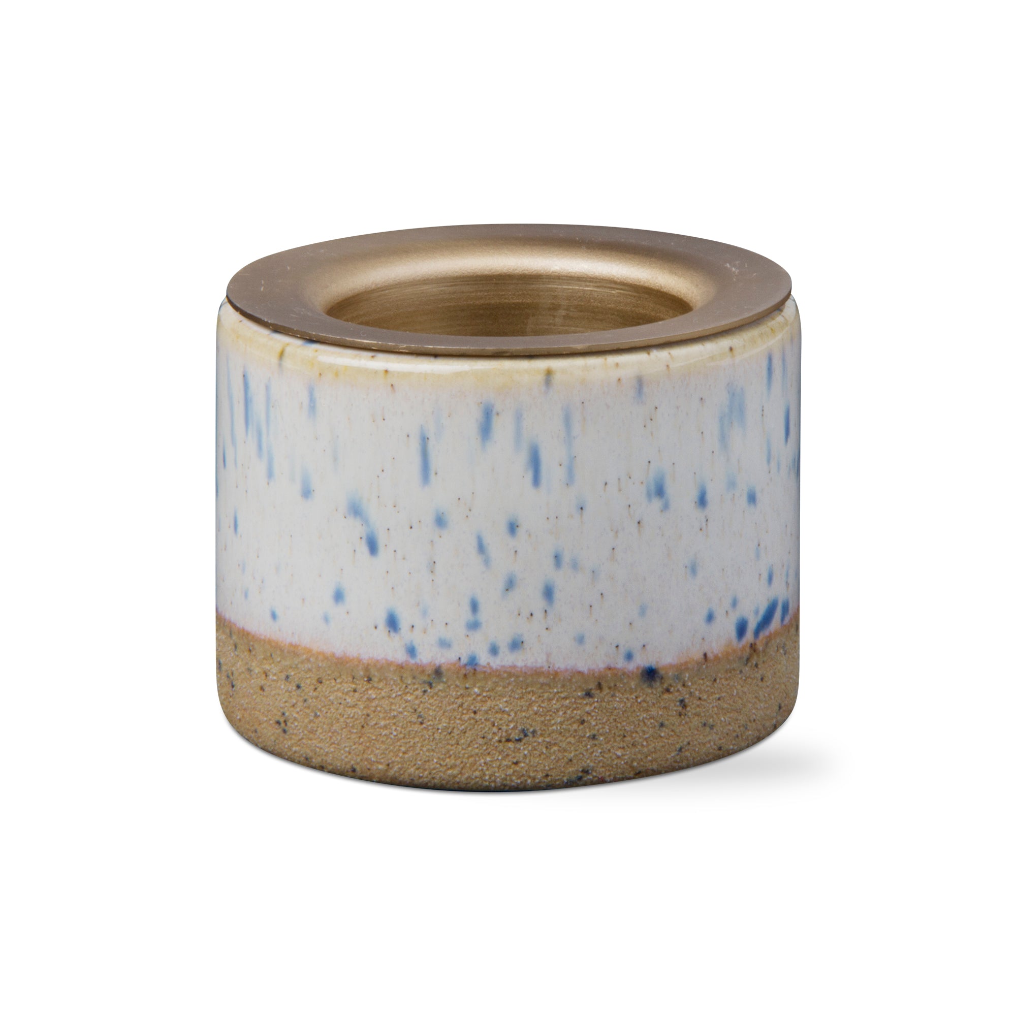 Reactive glaze makes each holder unique. convertible for use with standard size taper candle or tealight.