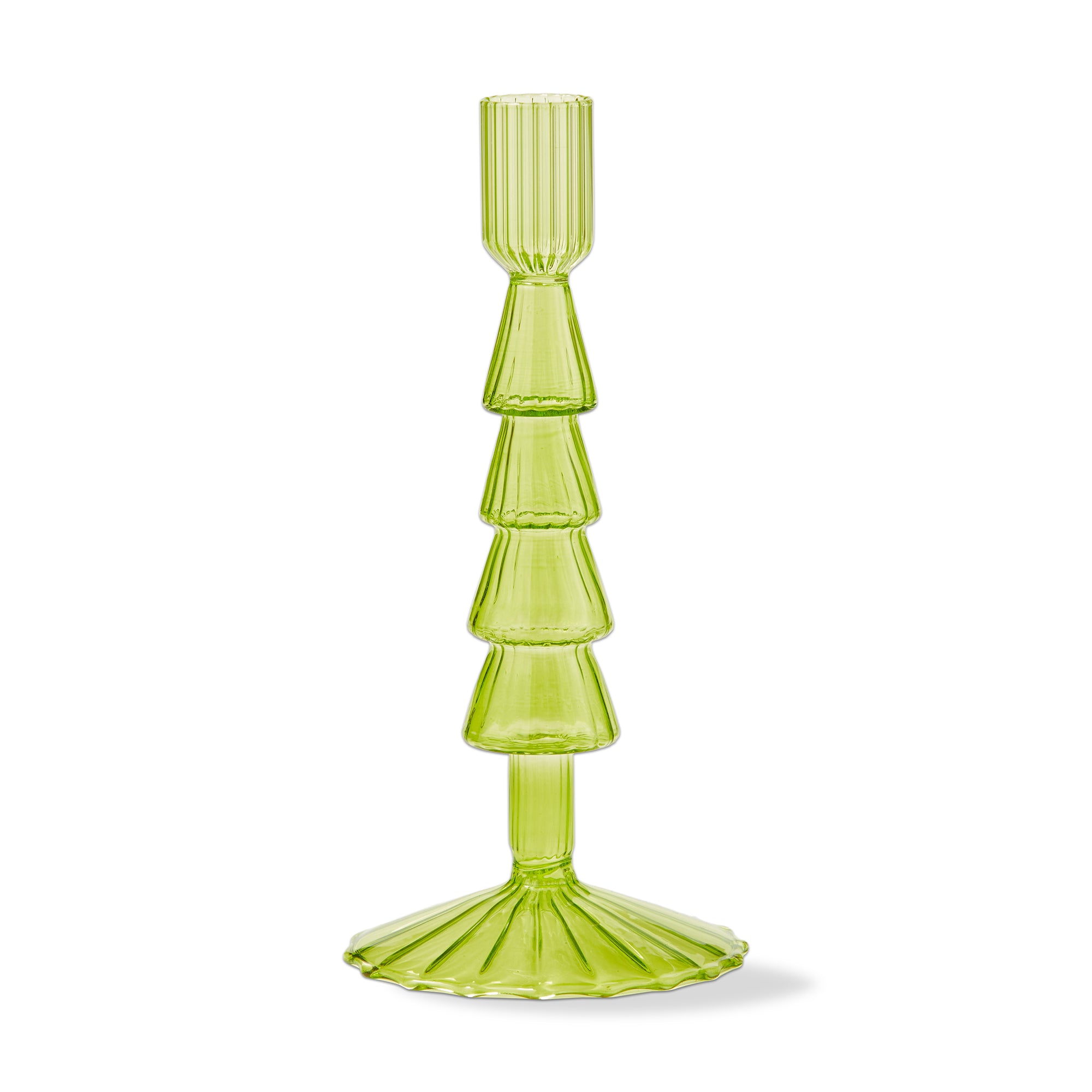 Tall light green glass tree taper holder that adds height and playful color to holiday tables. Fits any standard taper and pairs beautifully with the full groovy tree collection for a coordinated display. Hand painted details add warmth while its versatile design makes styling simple. Sized for layered displays and pairs beautifully with seasonal greenery and décor.