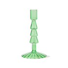 Small green glass tree taper holder ideal for layering with taller styles. Fits standard tapers and adds a playful touch to mantels, sideboards or winter table settings. Hand painted details add warmth while its versatile design makes styling simple. Sized for layered displays and pairs beautifully with seasonal greenery and décor.
