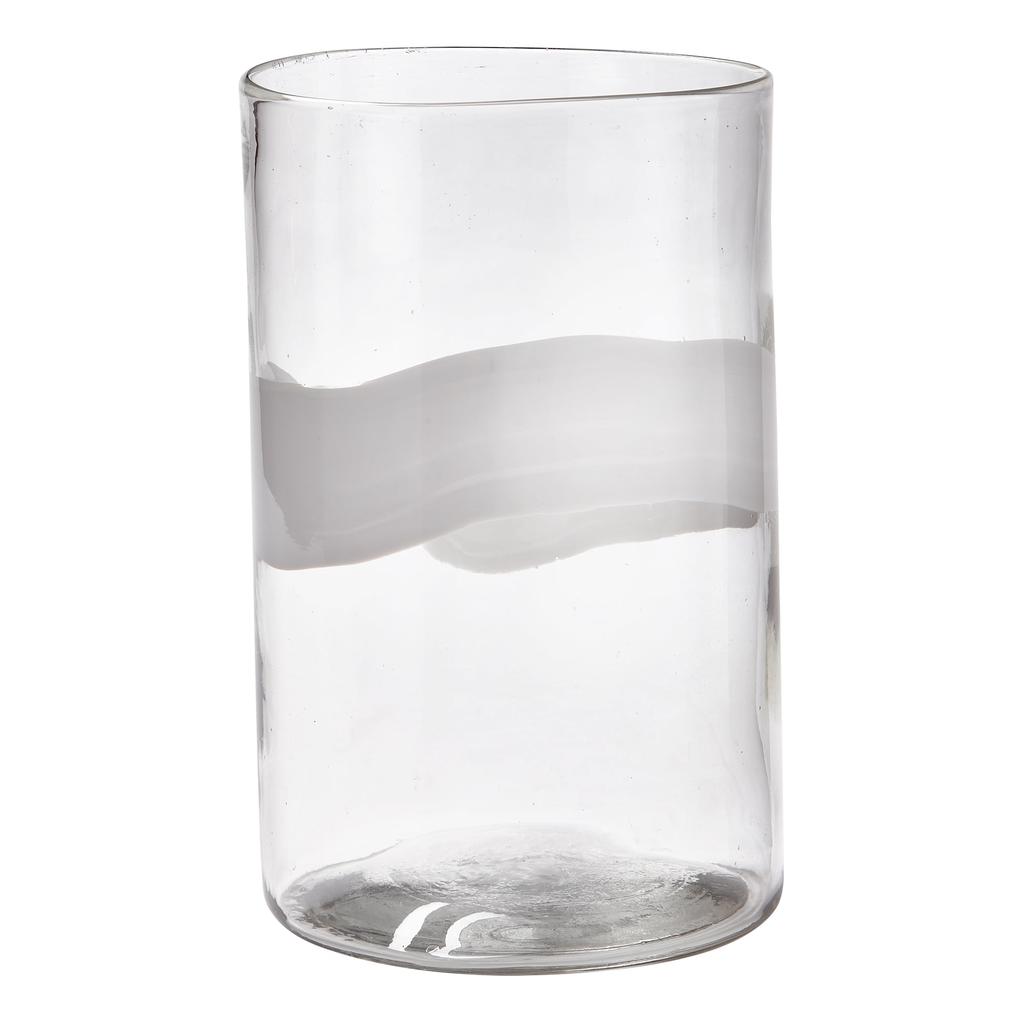 Artisan-made using blown glass techniques, this hurricane is perfect for displaying pillar candles up to 6 inches in diameter. features include a clear finish with milky white ribbon detail. collect both sizes to create a beautiful vignette or mix and match with a range of candle holder selections from tag.