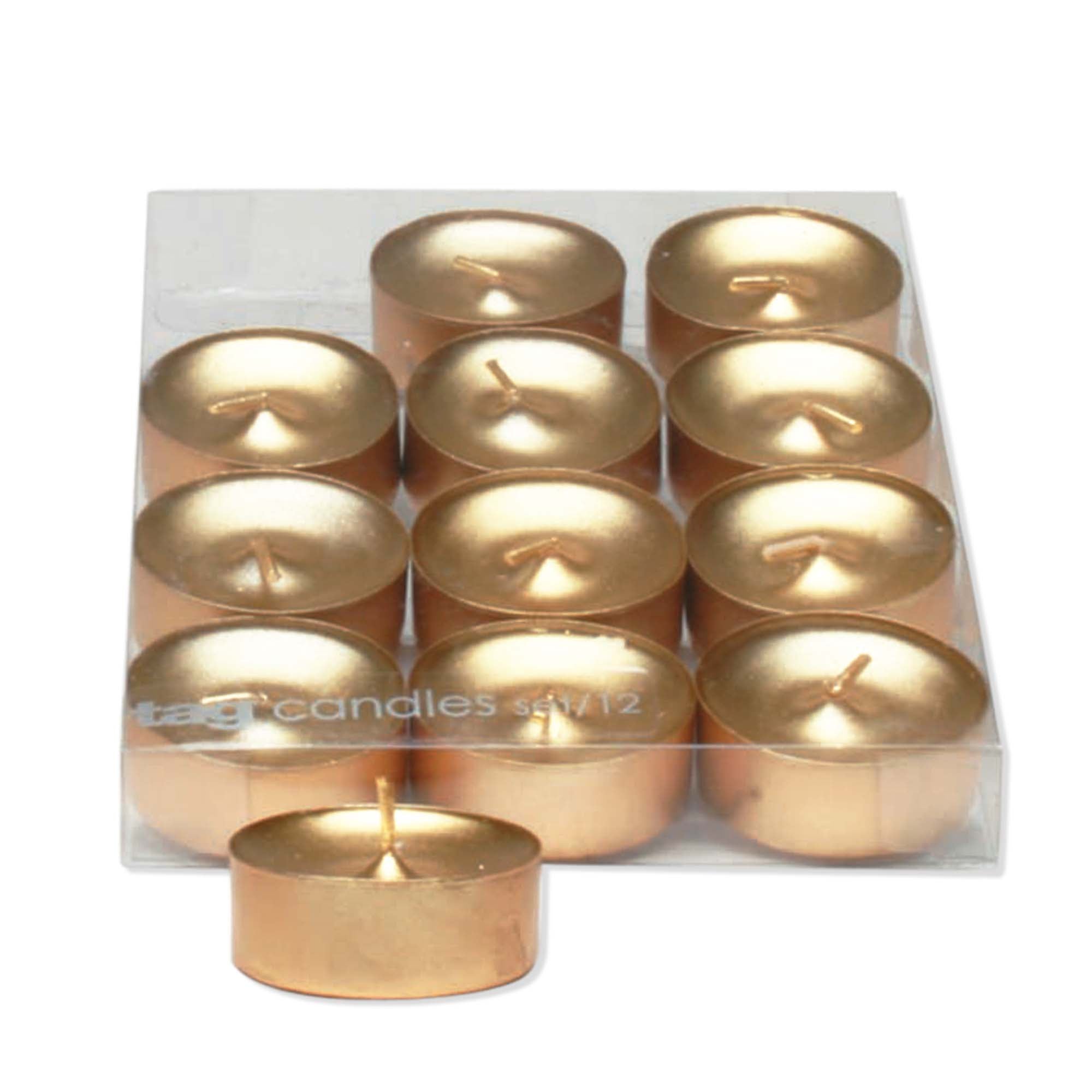 Light the night. set of 12 tealight candles comes in elegant gold. dress up any holiday or special event table for extra sophistication, or set on a side table for a bit of magic glow in any room of the home.