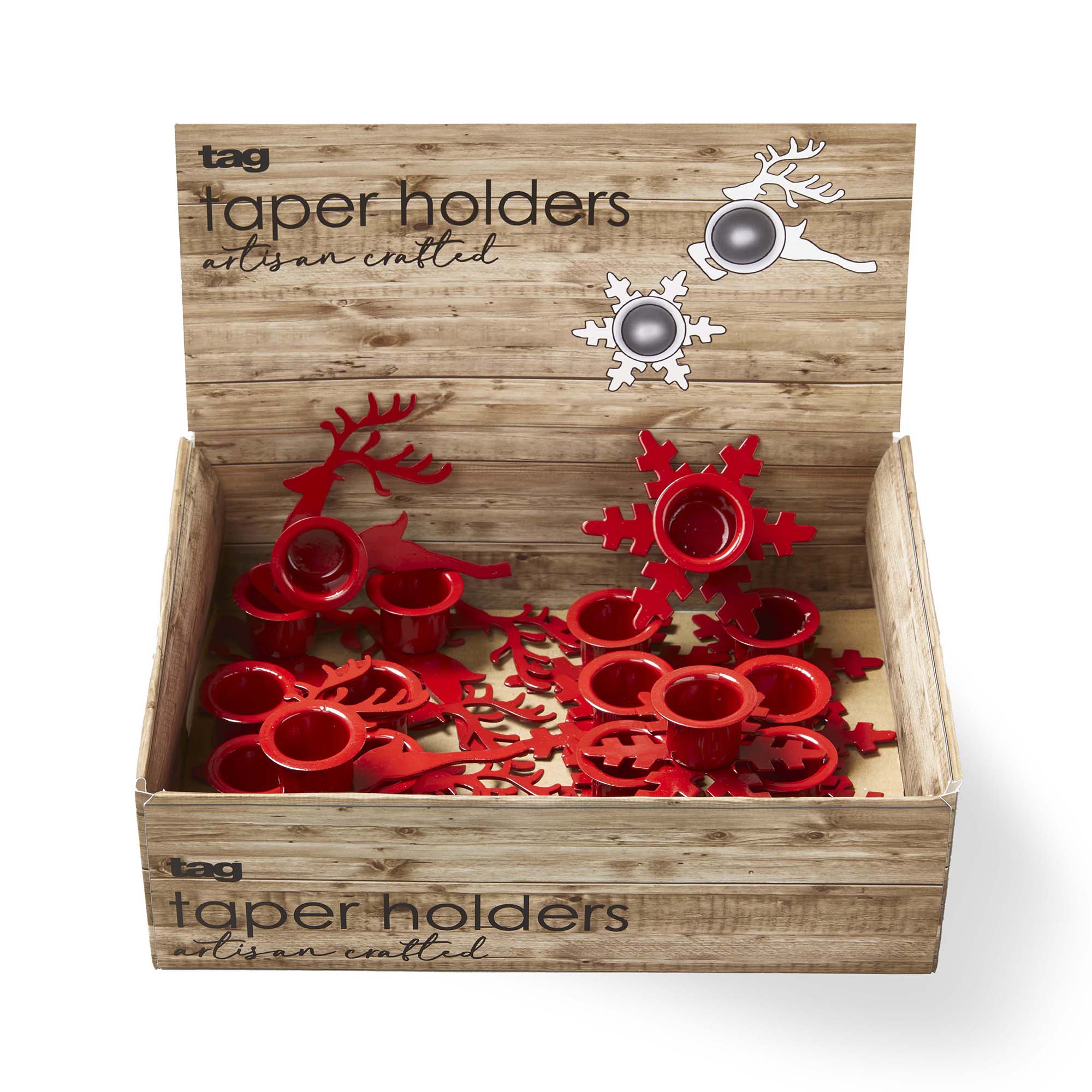 Snowflake Reindeer Taper Holder Assortment Of 20 Cdu