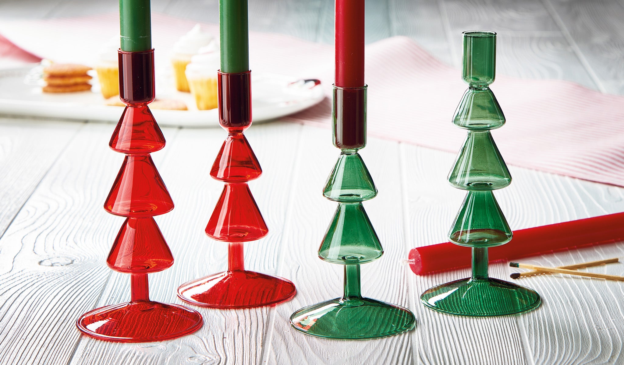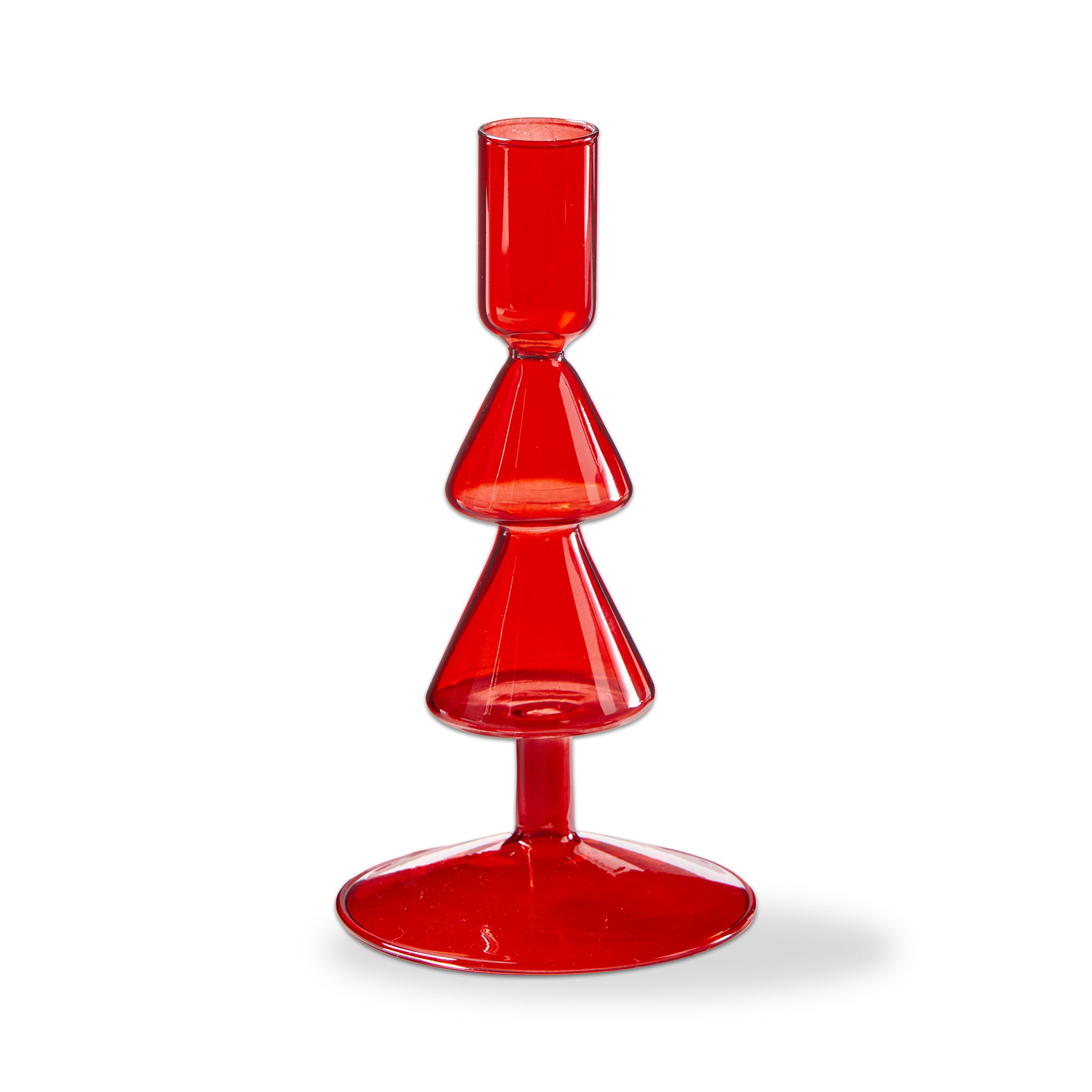 Petite red glass tree taper holder made for cozy sideboards and festive shelves. Fits a standard taper. Hand painted details add warmth while its versatile design makes styling simple. Sized for layered displays and pairs beautifully with seasonal greenery and décor.