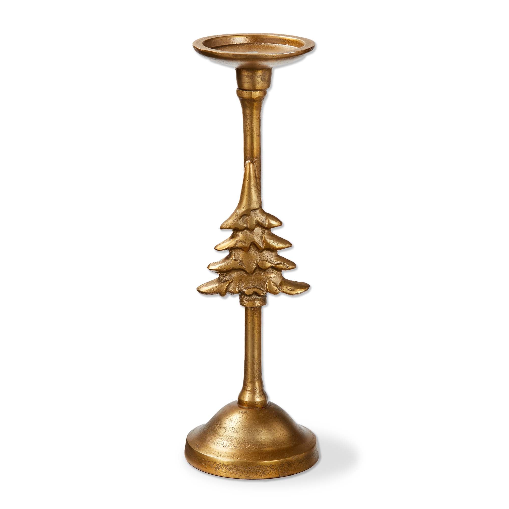 Add a touch of festive elegance to your space with this versatile Tree Taper & Pillar Holder. Crafted from aluminum with an antique brass finish, this holder can be used for both taper and pillar candles. The charming Christmas tree design adds a touch of holiday cheer.