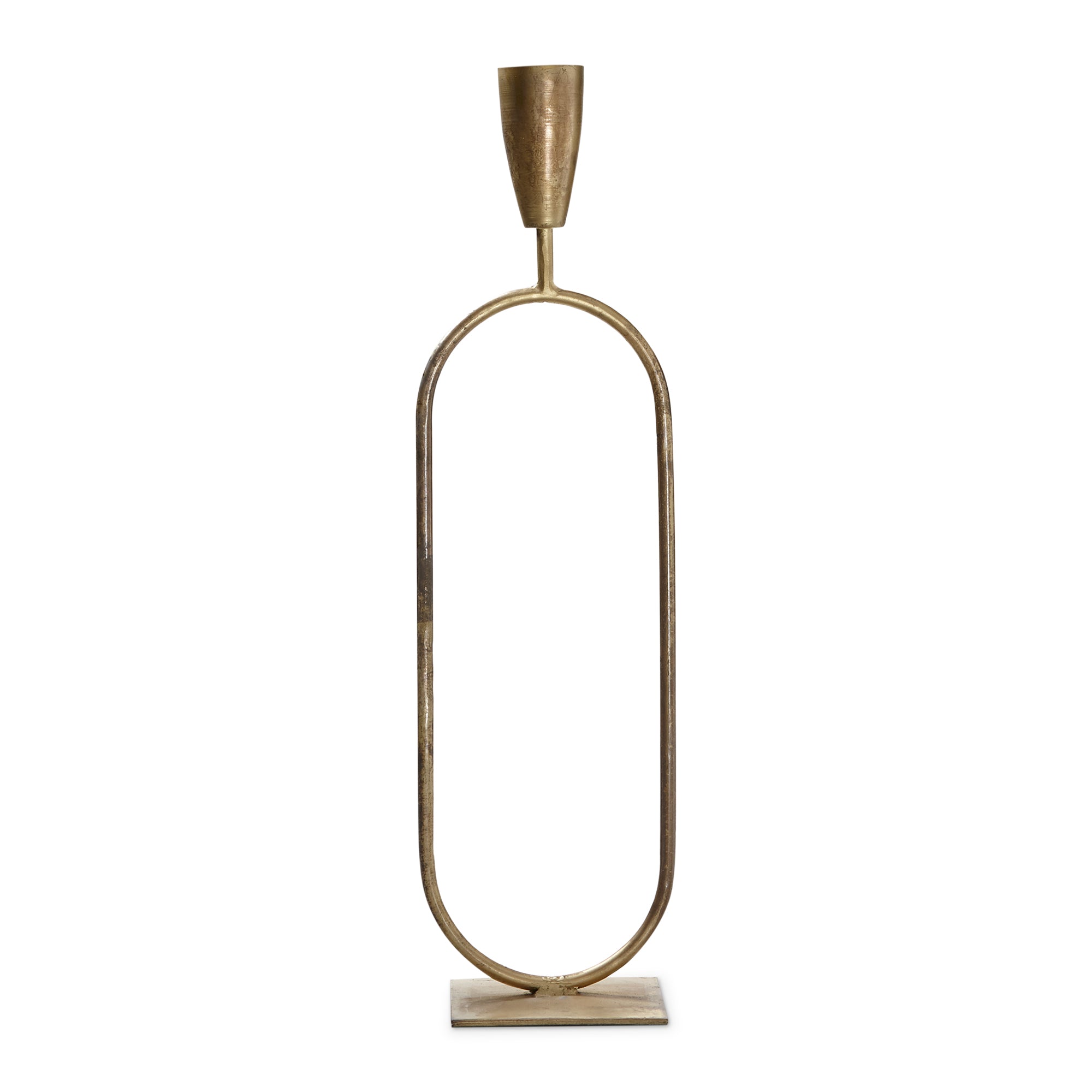 Kick up the glam. this statement, artisan-made taper candle holder features iron construction and handcrafted detail. pair with other maestosos taper holder sizes. bring deco style to any room! holds standard size straight or taper candle, sold separately.