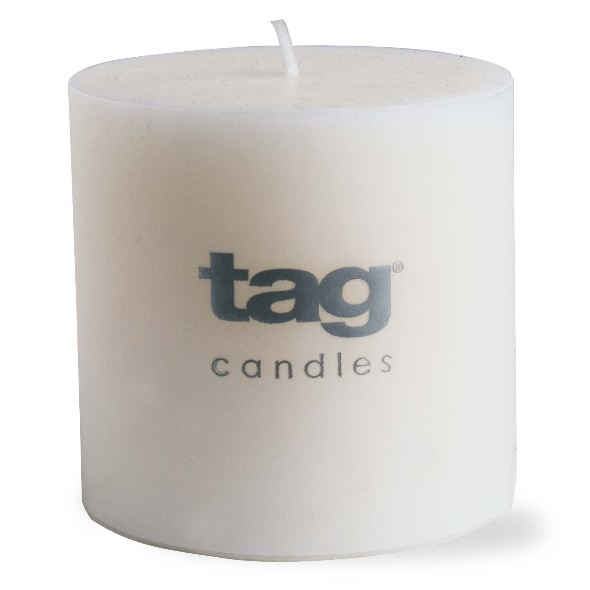 Perfectly timeless, this is a fresh new look with the same great quality of tag's classic chapel candles you've come to know & love! beautifully crafted of pure, unscented paraffin wax, each candle provides clear, beautiful light. our signature white flat-topped pillar is perfect to use all year round. a great size for mixed candle displays to tall hurricanes, use pillar candles to help you create warm ambiences in a variety of spaces.