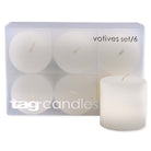 Perfectly timeless, this is a fresh new look with the same great quality of tag's classic chapel candles you've come to know & love! beautifully crafted of pure, unscented paraffin wax, each candle provides clear, beautiful light. our signature votives are perfect to use all year round. a great size for mixed candle displays to tall hurricanes, use pillar candles to help you create warm ambiences in a variety of spaces.