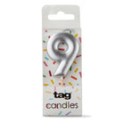 Metallic Digit 9 Candle in silver with cotton wick and plastic pick stand. Combine with other numbers for birthdays and anniversaries or top cupcakes for a milestone moment. View all items in Celebration.