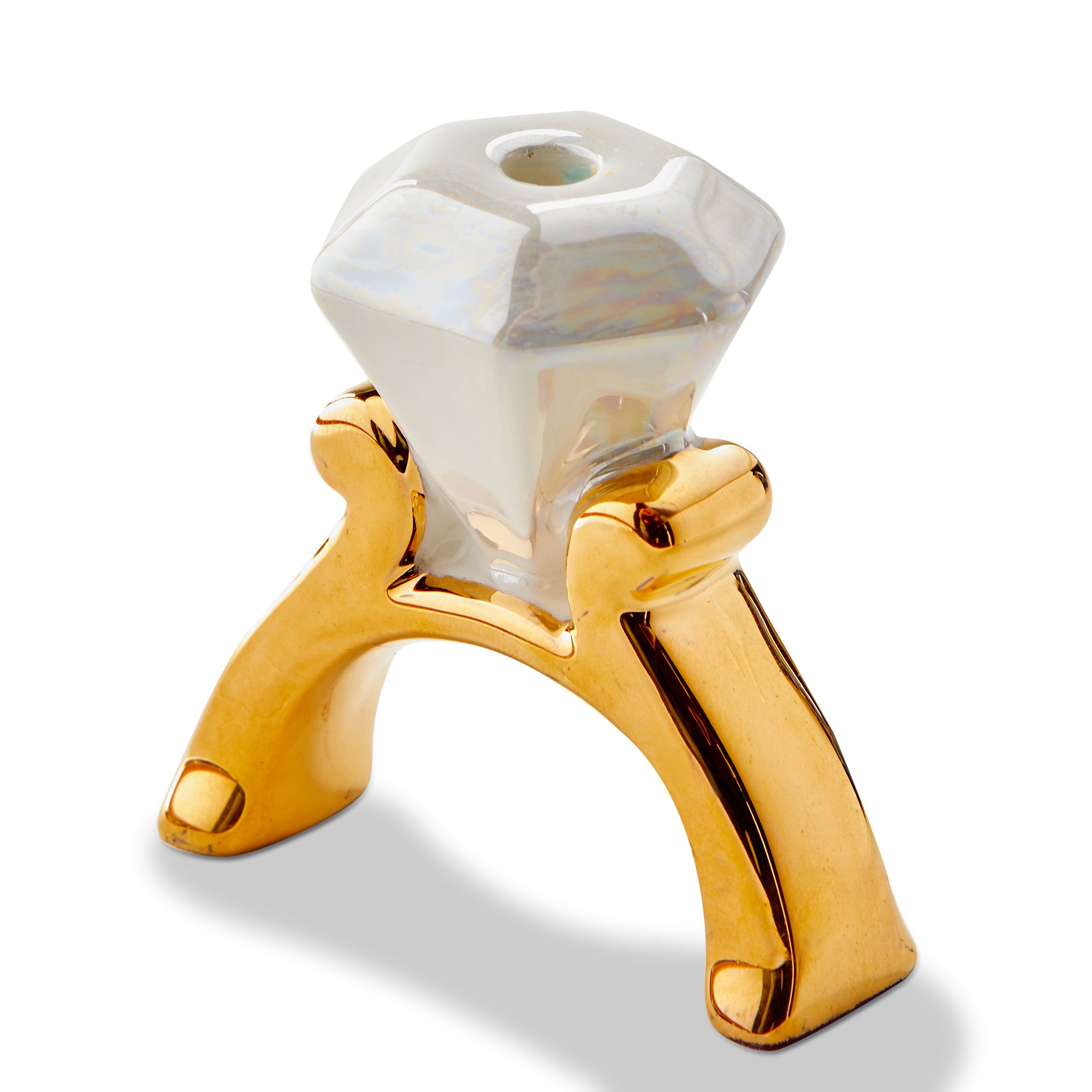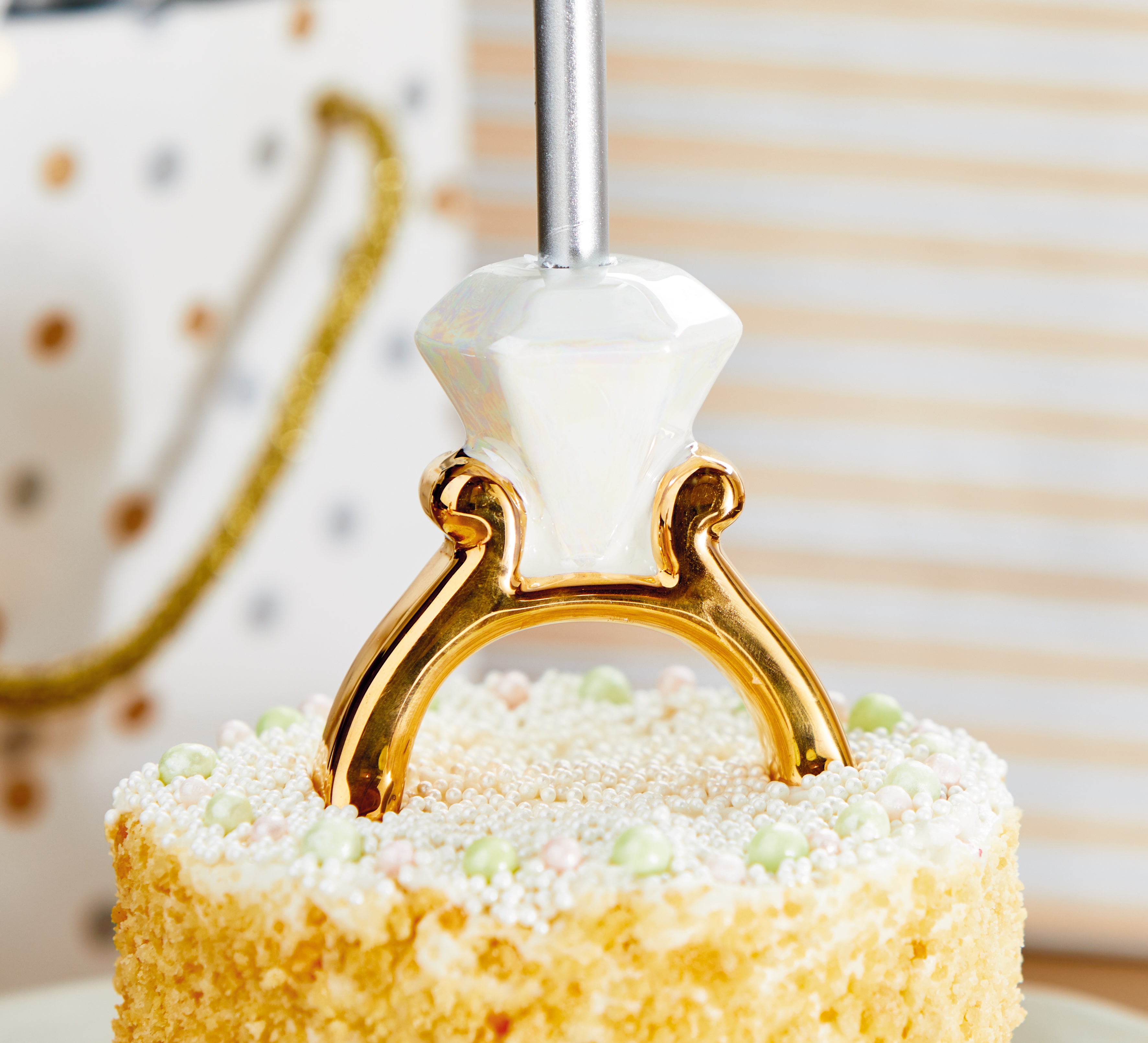 Ring Cake Topper Candleholder is a ceramic diamond ring with a candle cup at the top. Add sparkle to engagement parties, bridal showers, or proposal dinners and reuse year after year. View all items in Celebration.
