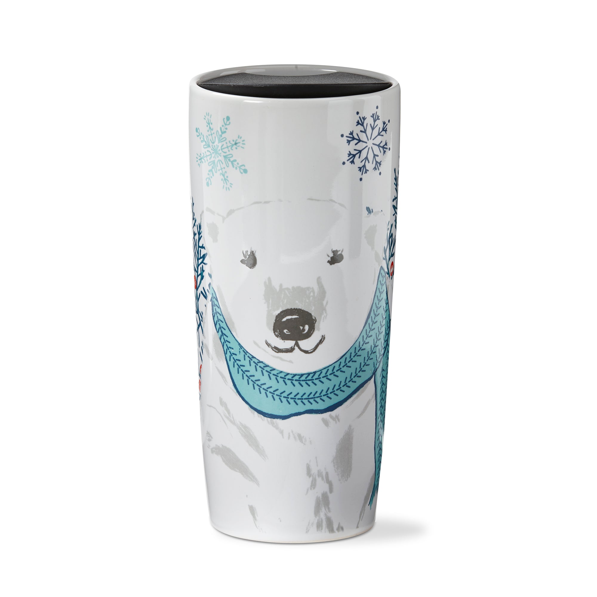 Travel mugs are on-the-go essentials! double-wall stoneware construction keeps your drinks warmer longer, and protects hands from hot contents. this travel mug comes with a functional plastic lid and features a special polar bear design for the season.