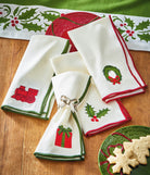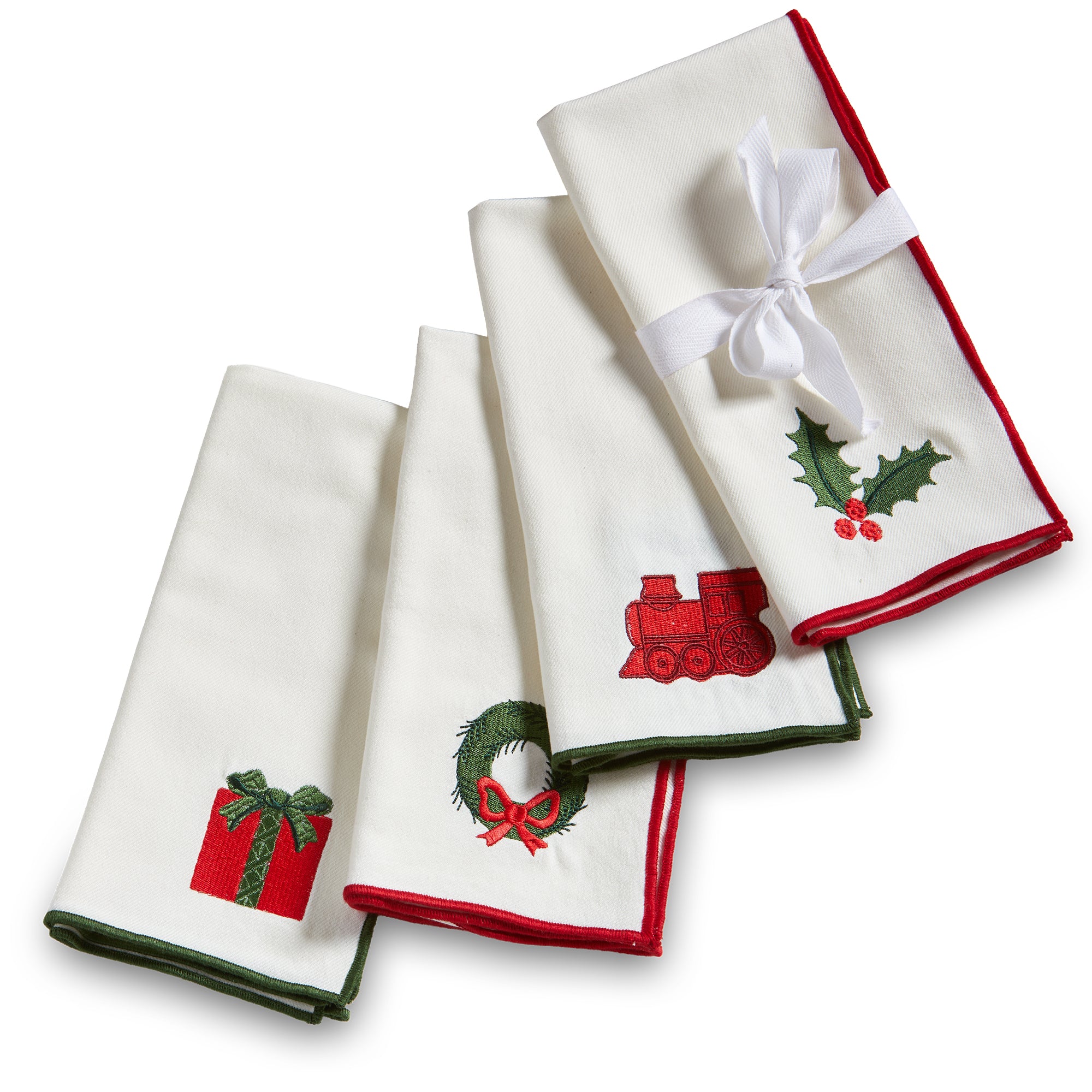 Christmastime embroidered napkins add stitched holiday detail to everyday white napkins giving place settings a polished seasonal finish. Hand painted details add warmth while its versatile design makes styling simple. Sized for layered displays and pairs beautifully with seasonal greenery and décor.