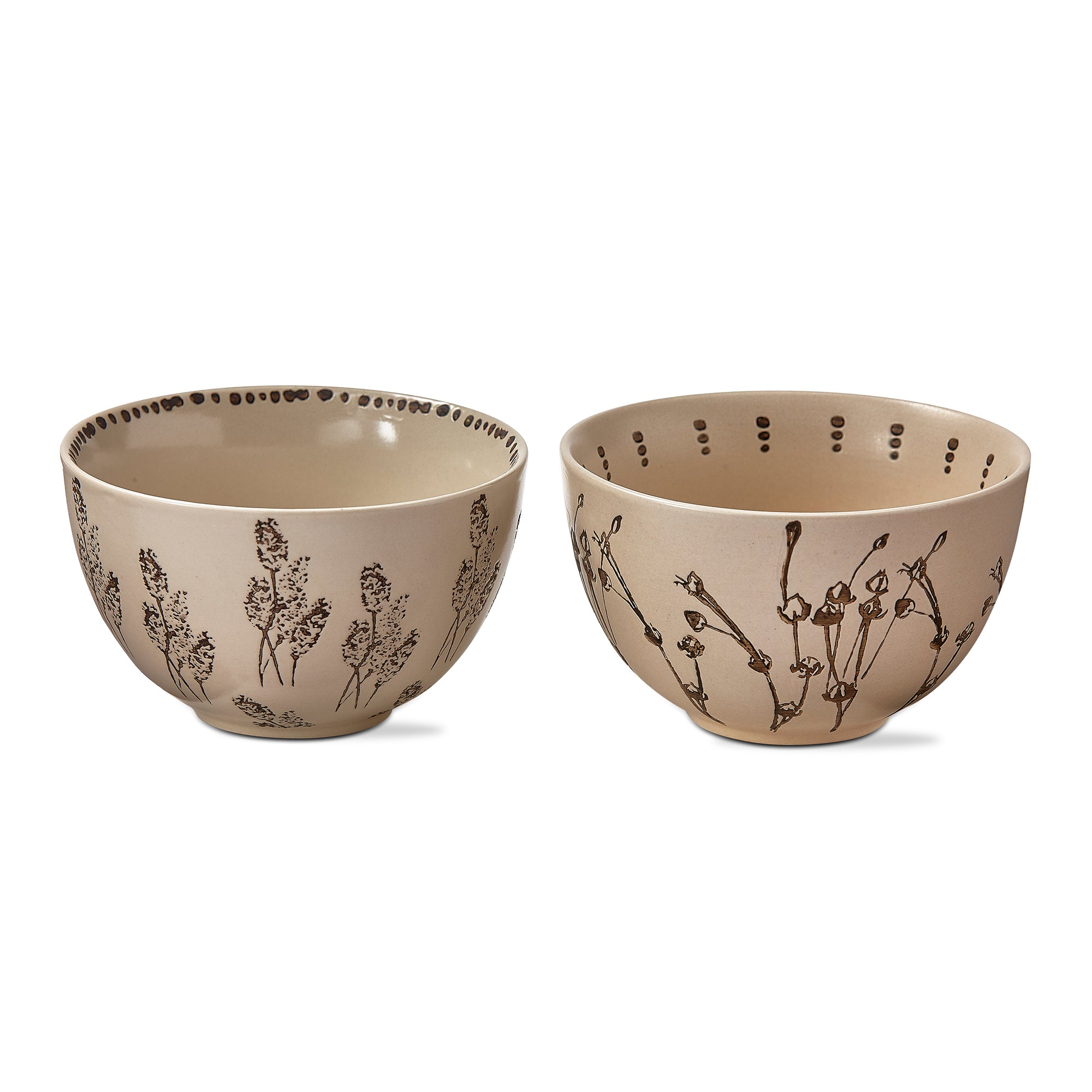 Snack bowls are the perfect accompaniment to the kitchen. use to serve small appetizers or snacks or use for kitchen prep hold different ingredients. they're small but mighty useful! these gathering snack bowls feature beautiful stoneware with hand-painted drawings of autumn botanicals and wax resist design on both the interior and exterior.