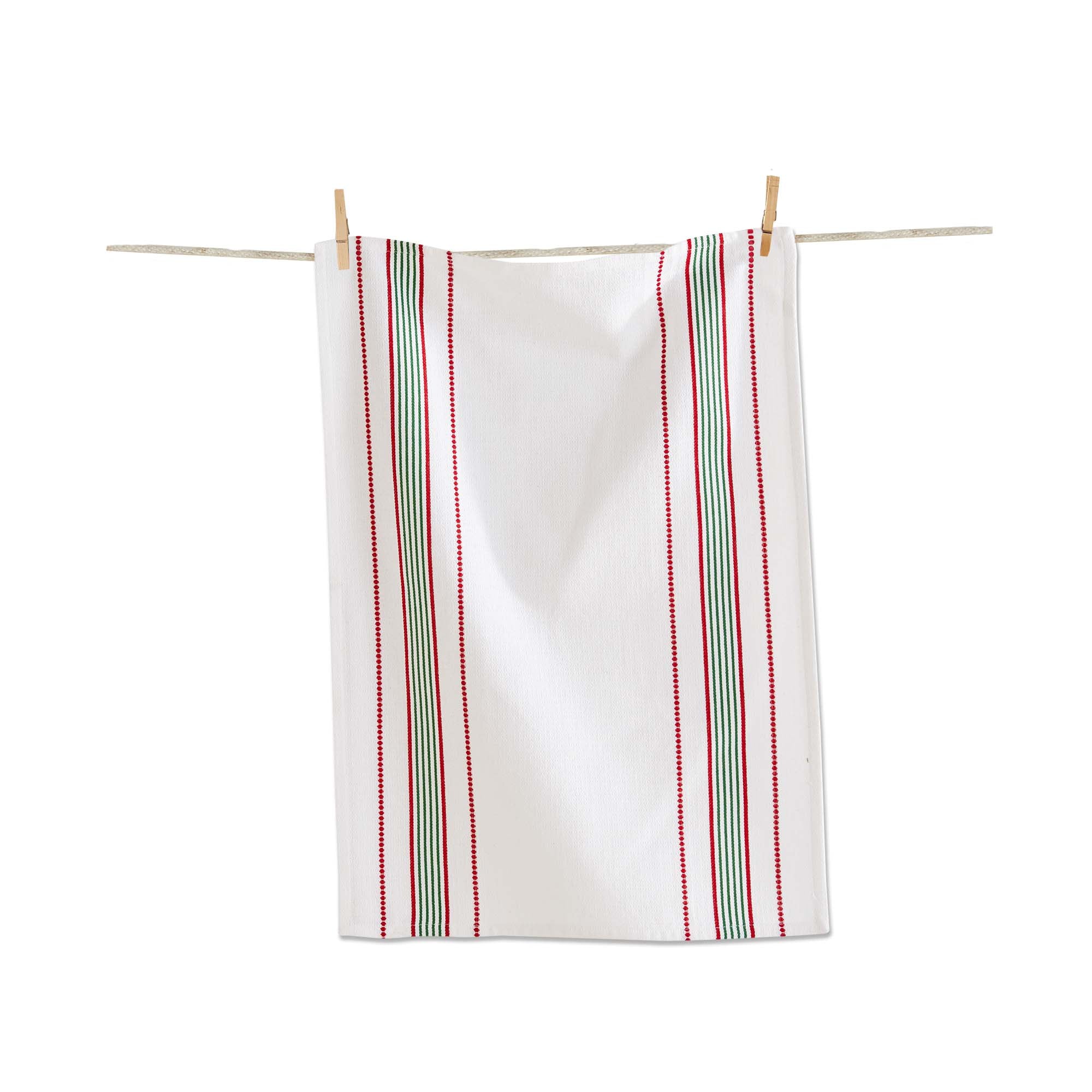 A classic and timeless dishtowel with a striped pattern in white and red. Ideal for holiday gatherings and everyday use.