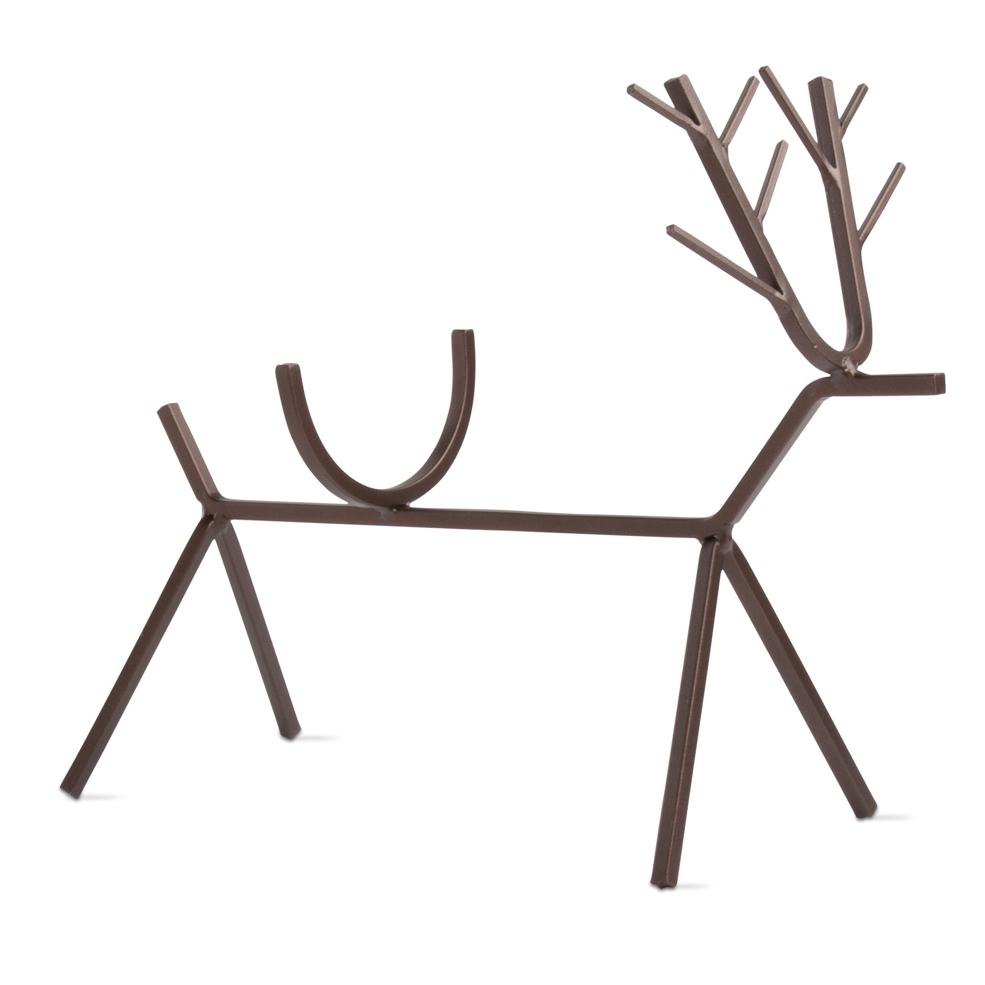 Oh, deer. this holiday reindeer is a playful take on a basic wine bottle holder. made from metal, the holder cradles your wine, while adding winter whimsy to your christmas spread. antique bronze finish matches a range of decor. holds a standard wine bottle.