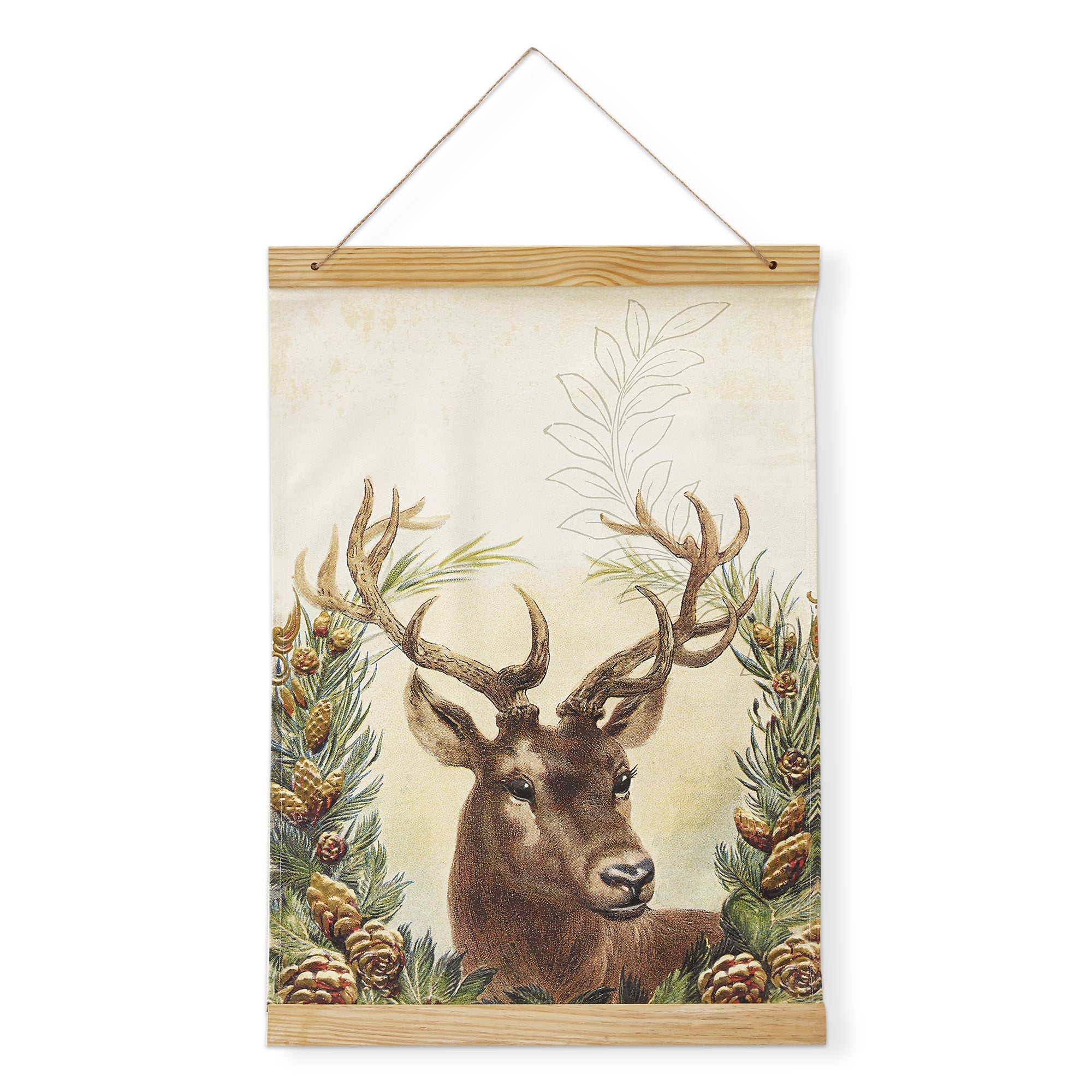 May your days be merry and bright. decorate your walls with festive artwork. inspired by magic of the holidays, let this art piece take center stage anywhere in your home. cotton, wood, and jute construction. cord for hanging.