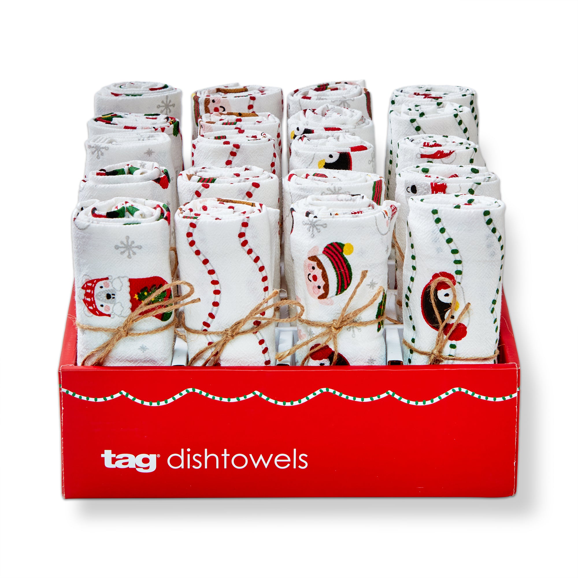 Holiday Cheer Floursack Dishtowel Assortment Of 20 & Cdu