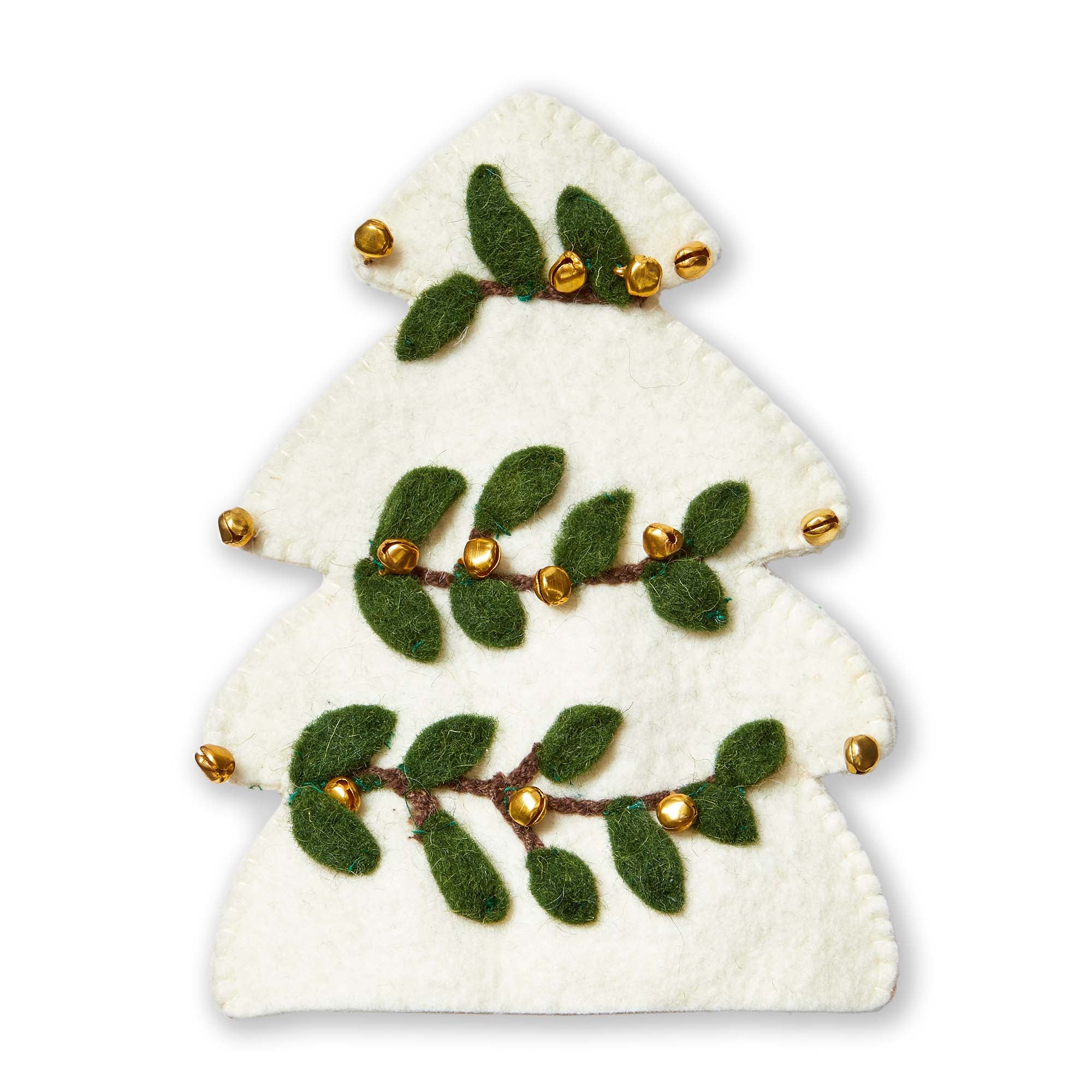 This charming bottle topper, crafted from soft wool felt and durable metal, features a festive balsam garland design. Add a touch of seasonal cheer to any holiday table settings.