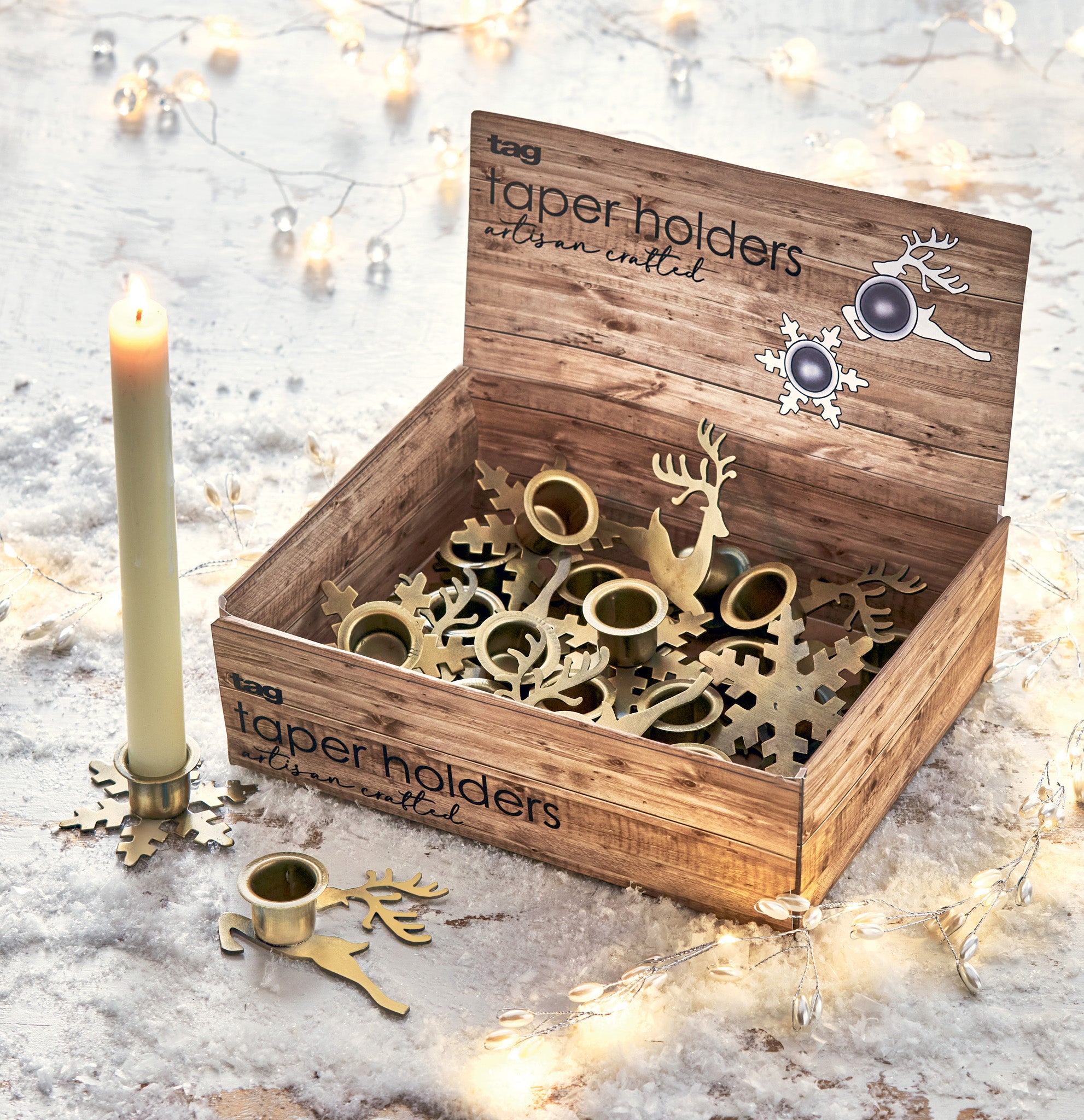 Snowflake Reindeer Taper Holder Assortment Of 20 Cdu