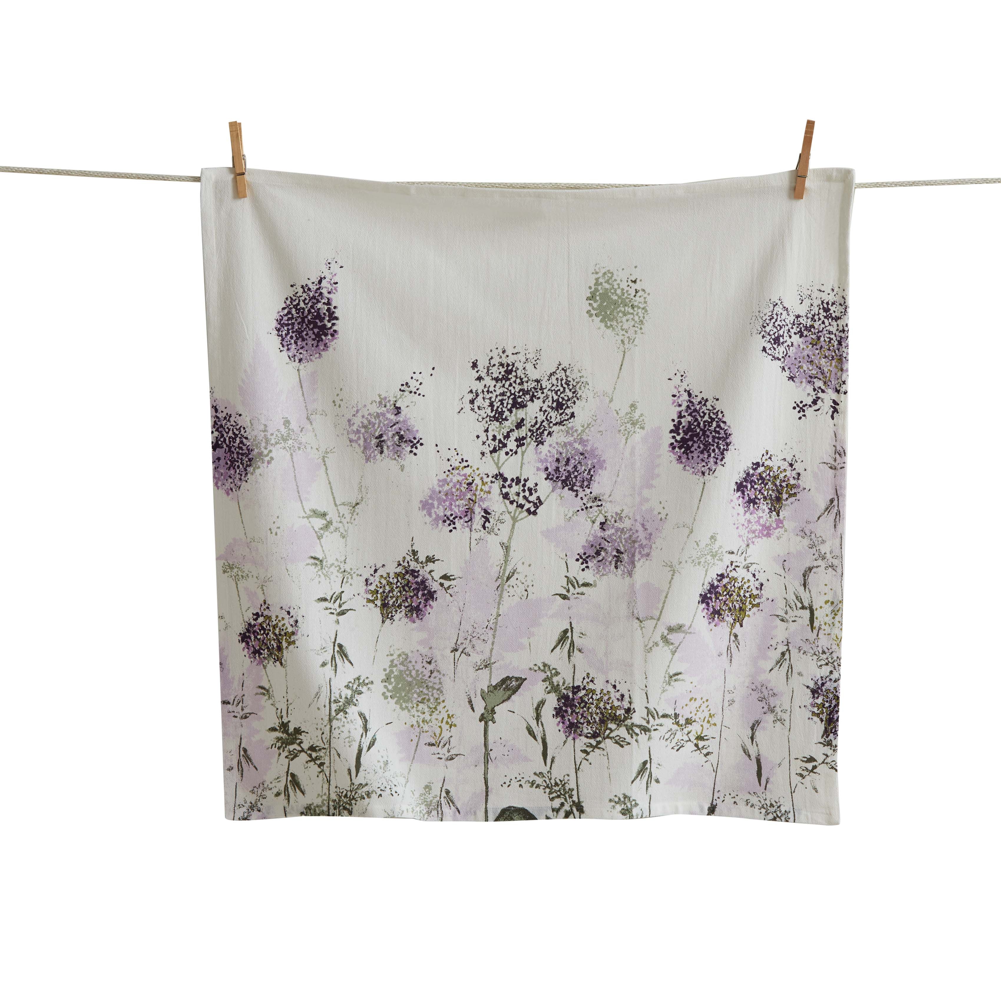 Highly absorbant and light weight. 100% cotton flour sack dishtowel featuring beautiful lilac flowers. Great for drying dishes and letting bread rise.