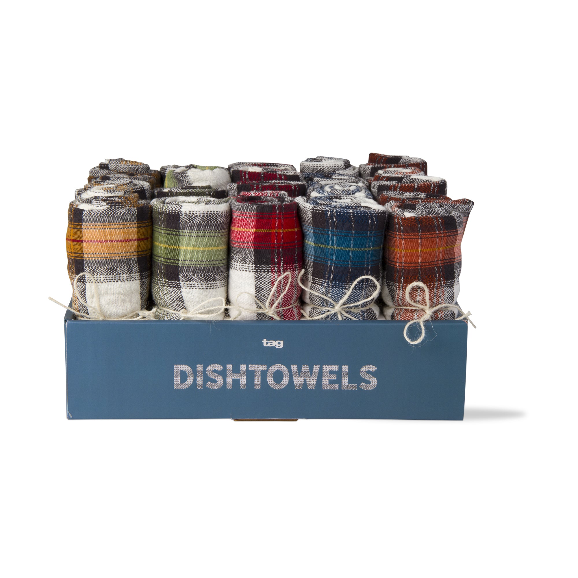 Meet our kitchen mvp and cherished customer favorite! known for exceptional absorbency, durability, and elevated style, our beloved dishtowels have been a core product of tag since 1975. great ornamental dishtowel assortment, with warm colors that are perfect for winter or everyday. assortment includes: 5 each of 5 colorways (cinnamon, olive, red, blue & chestnut).