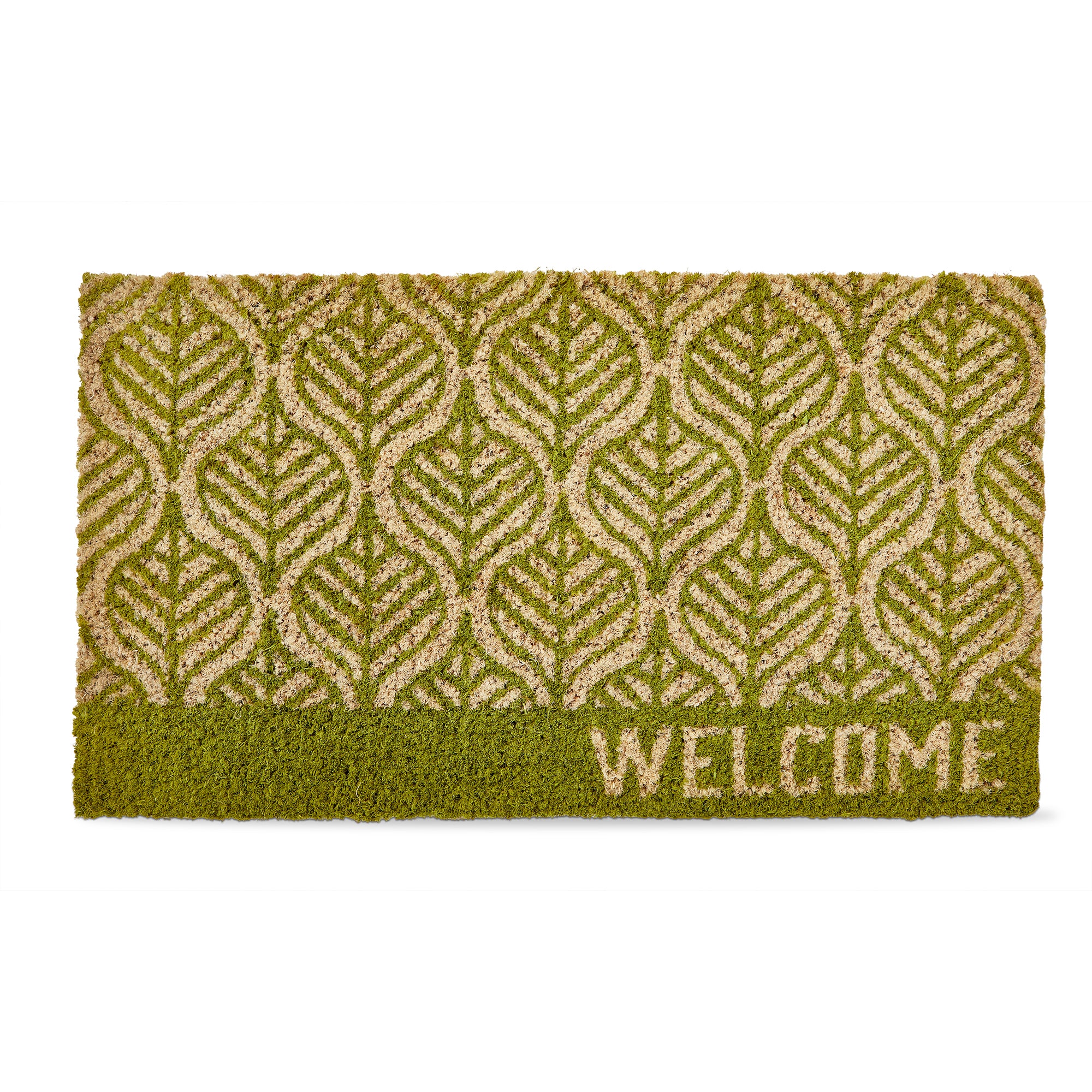 Linden Leaf Welcome Coir Mat pairs a fresh leaf print with a friendly welcome message. Place at the front door to greet guests while coir fibers brush off shoes. View all items in Doormats.